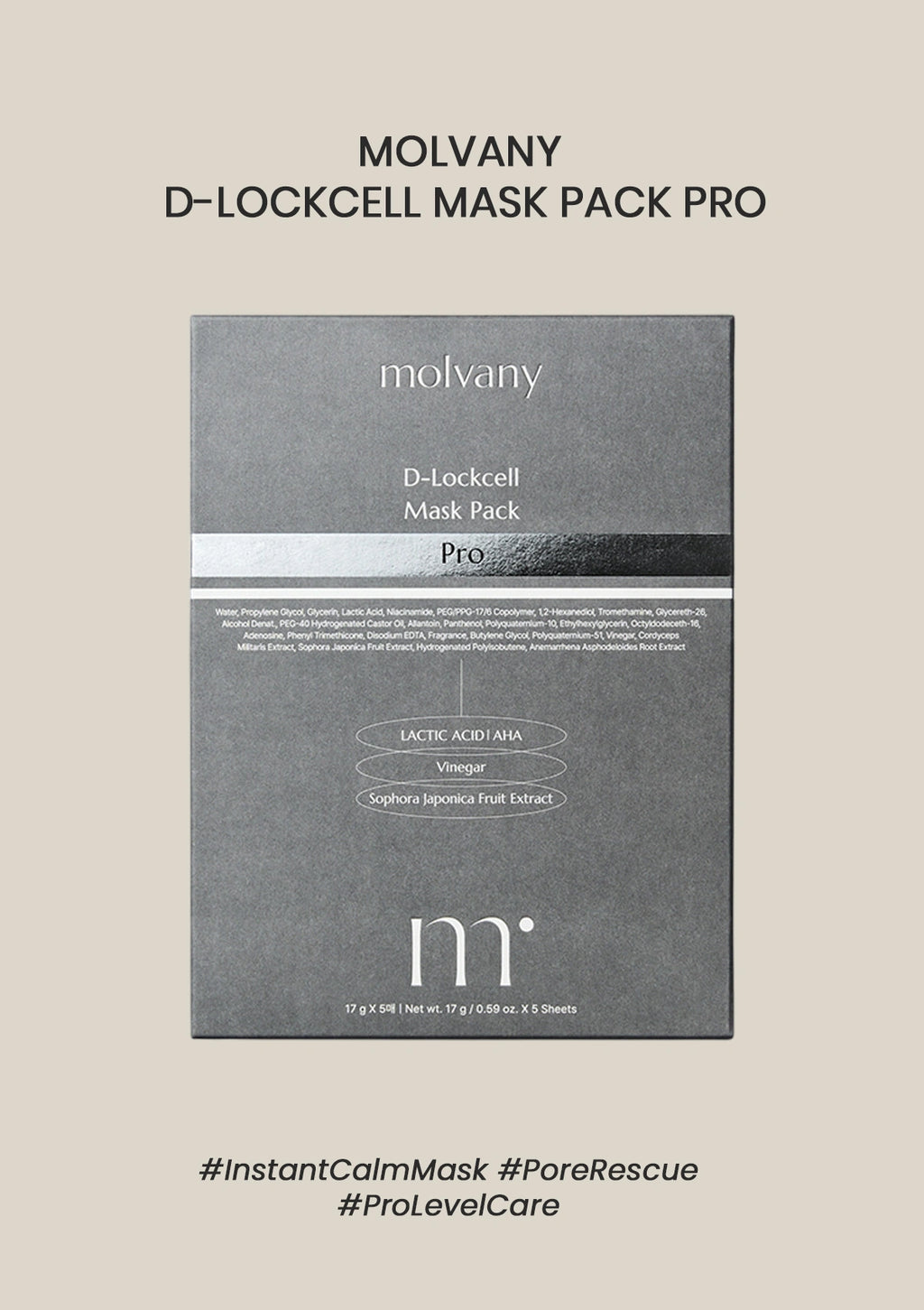 4. MOLVANY D-LOCKCELL MASK PACK PRO — exfoliate, brighten & smooth skin texture (use 1–2 times a week).