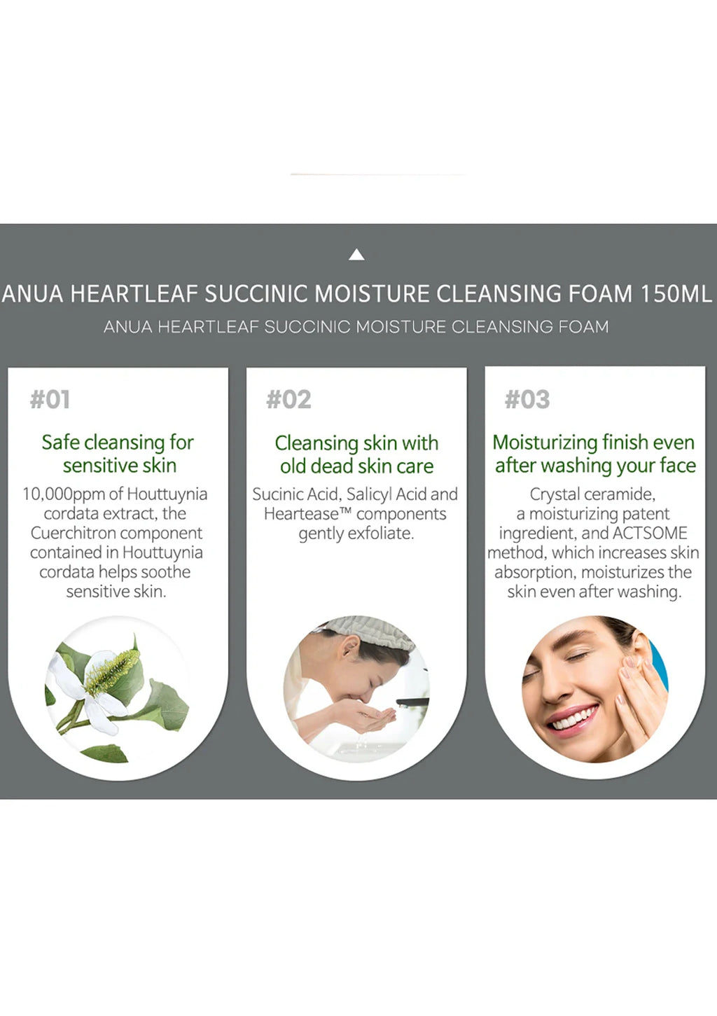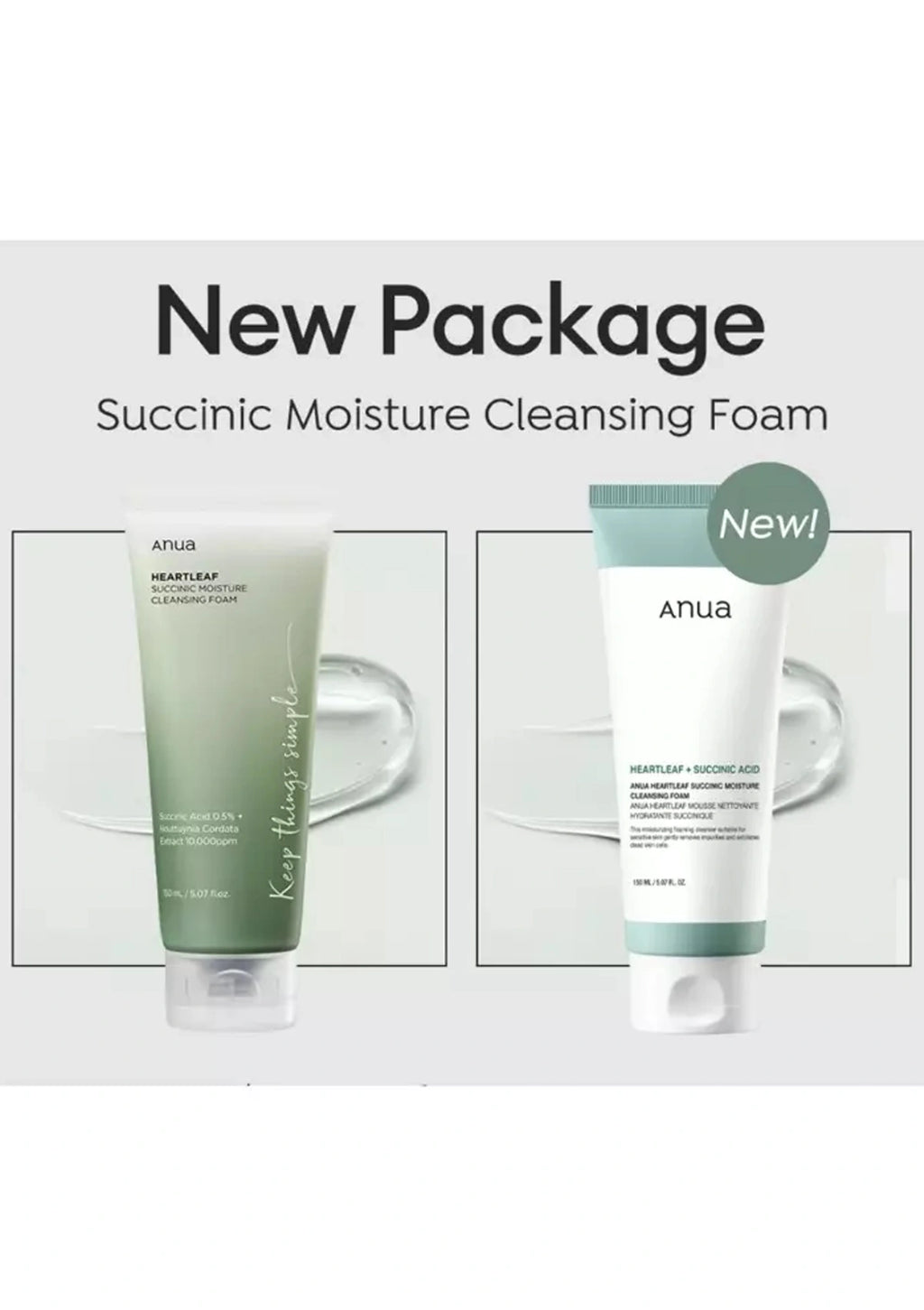 Anua Heartleaf Succinic Moisture Cleansing Foam, your gateway to smoother, more radiant skin with a touch of gentle exfoliation. This exceptional cleansing foam is specially formulated to cater to sensitive skin types, making it a skincare essential for those seeking safe and effective cleansing. Designed to provide daily moisture and dead skin care, it's a must-have for your cleansing regimen.