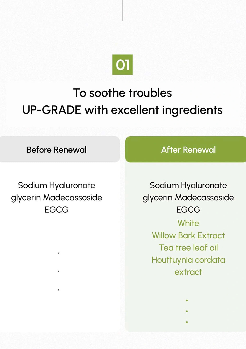 Sodium Hyaluronate, Trehalose, Glycerin, Niacinamide, Glutathione, Madecassoside, White Willow Bark Extract, Epigallocatechin Gallate, Butylene Glycol, Tea Tree Leaf Oil, Polyglycerol-10 Laurate, Medicinal Buckwheat Extract.