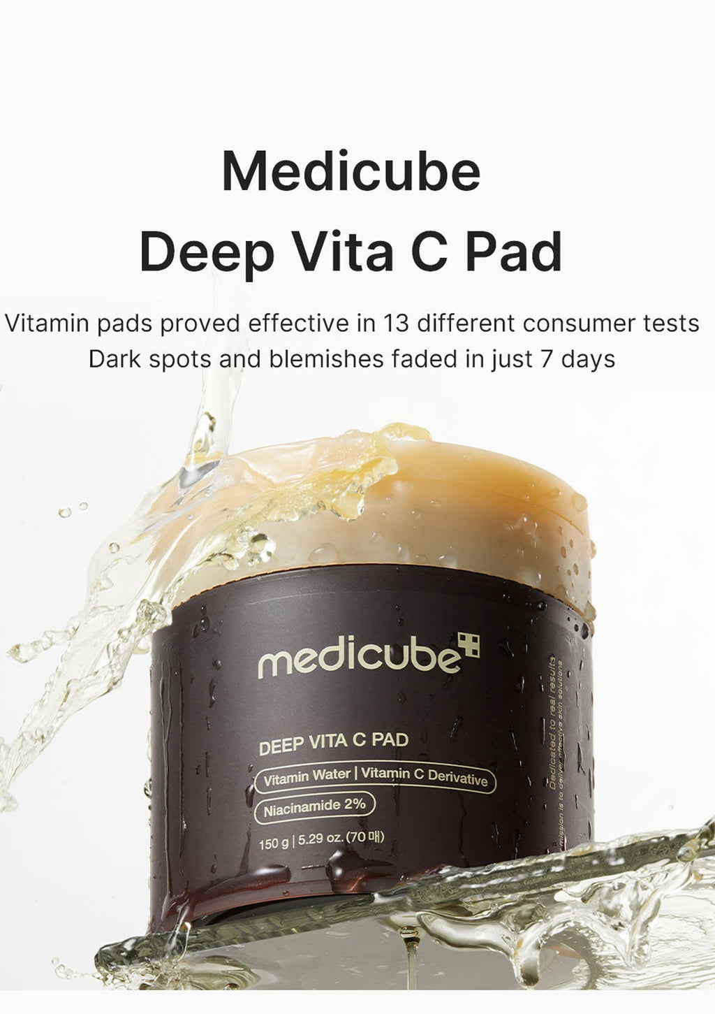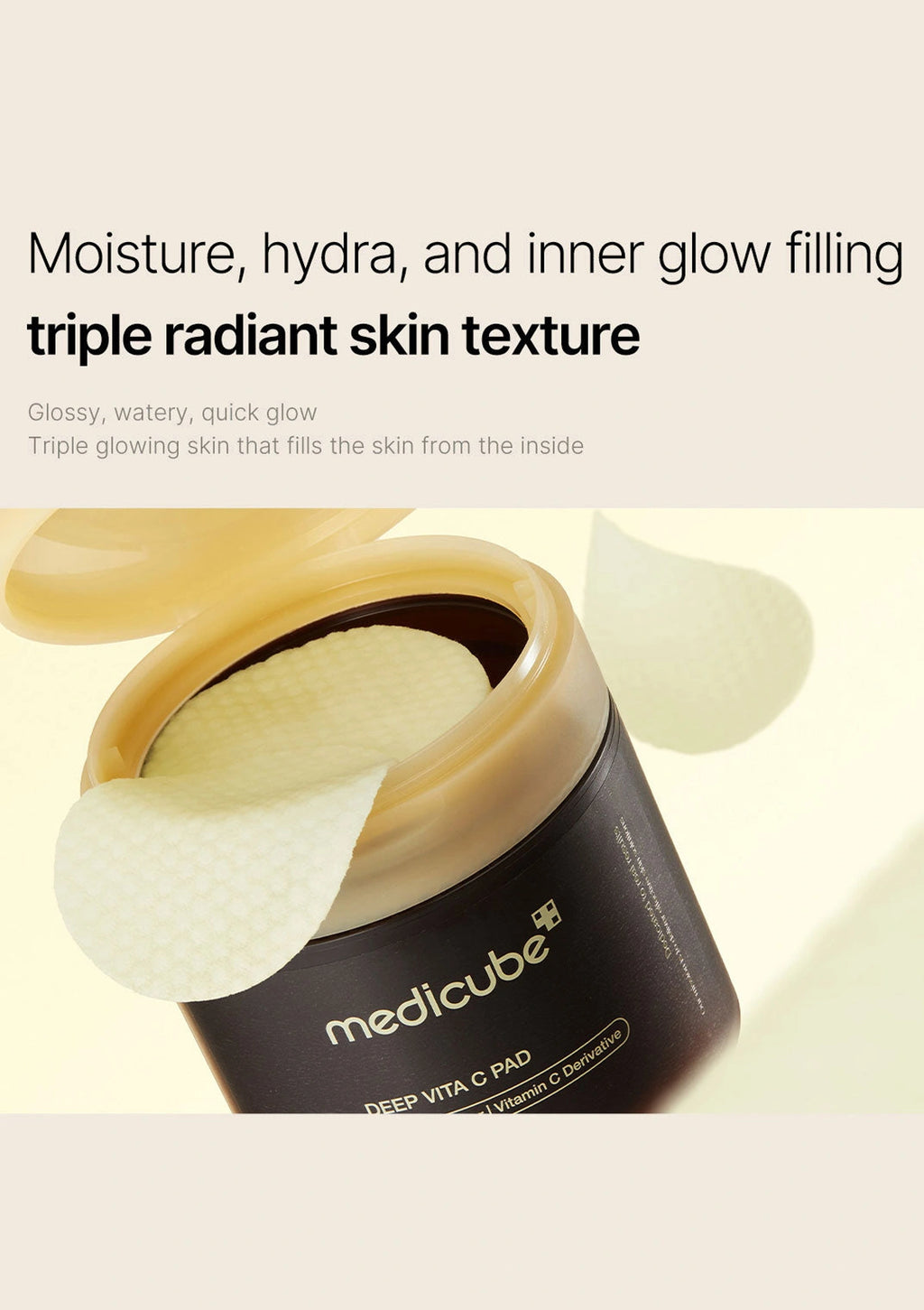 Medicube Deep Vita C Pad is a vegan toner pad infused with highly concentrated vitamins to gently exfoliate dead skin cells and reveal a brighter, more radiant complexion. Featuring dual-textured pads, it provides both exfoliation and hydration in one step, helping to smooth rough skin and unclog pores.