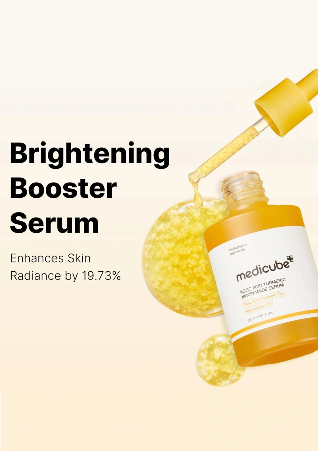 Medicube Kojic Acid Turmeric Niacinamide Serum is a lightweight brightening serum designed to improve the appearance of dark spots, uneven skin tone and dullness. Formulated with kojic acid and niacinamide, it helps refine overall skin clarity while supporting a smoother, more balanced complexion.
