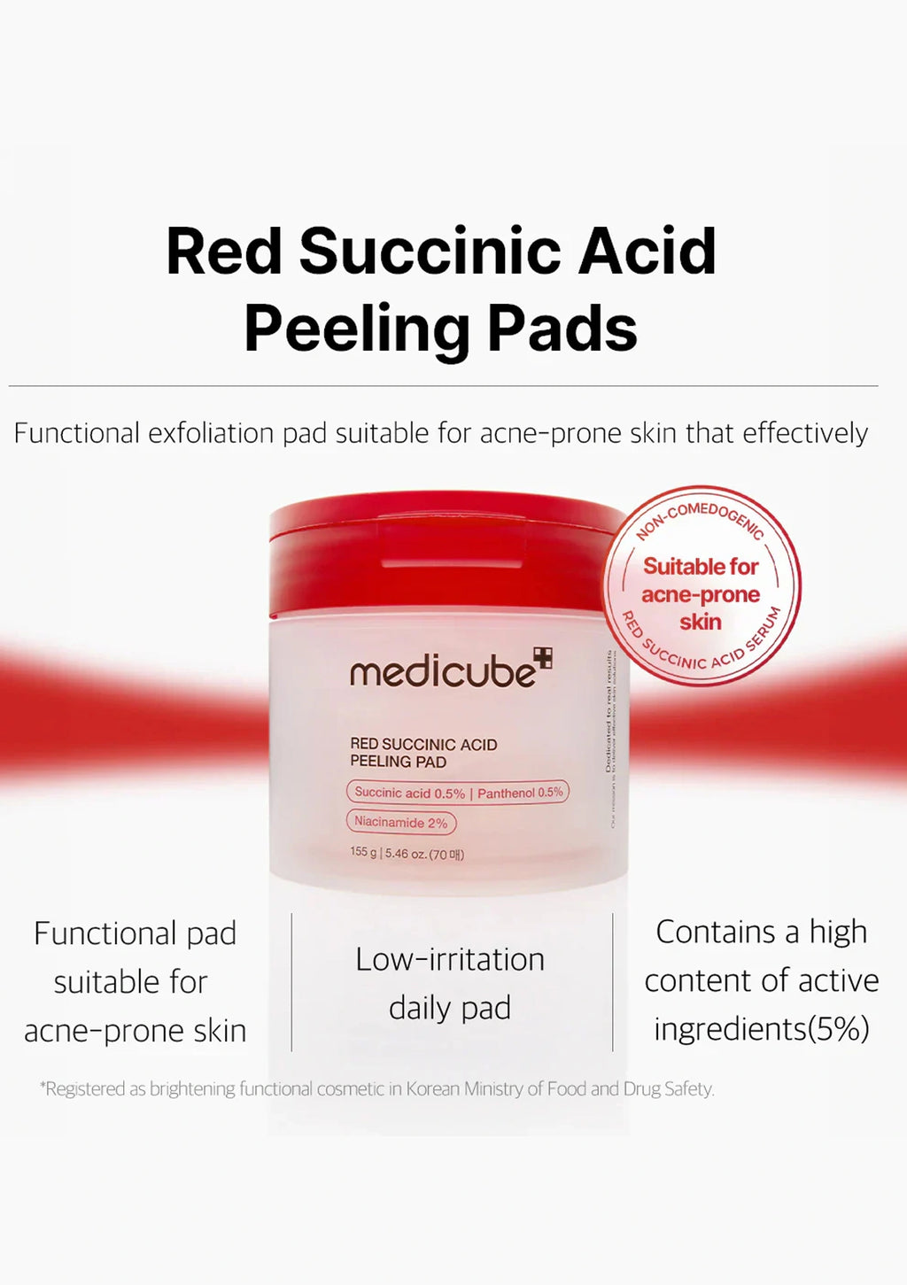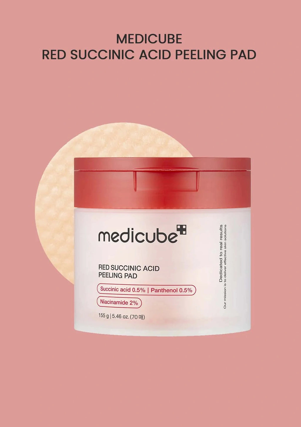 Medicube Red Succinic Acid Peeling Pad are an innovative skincare solution specifically designed for acne-prone skin, catering to both teens and adults. These toner pads combine the powerful benefits of Red Succinic Acid and Panthenol to effectively target acne while promoting a brighter and more even skin tone.