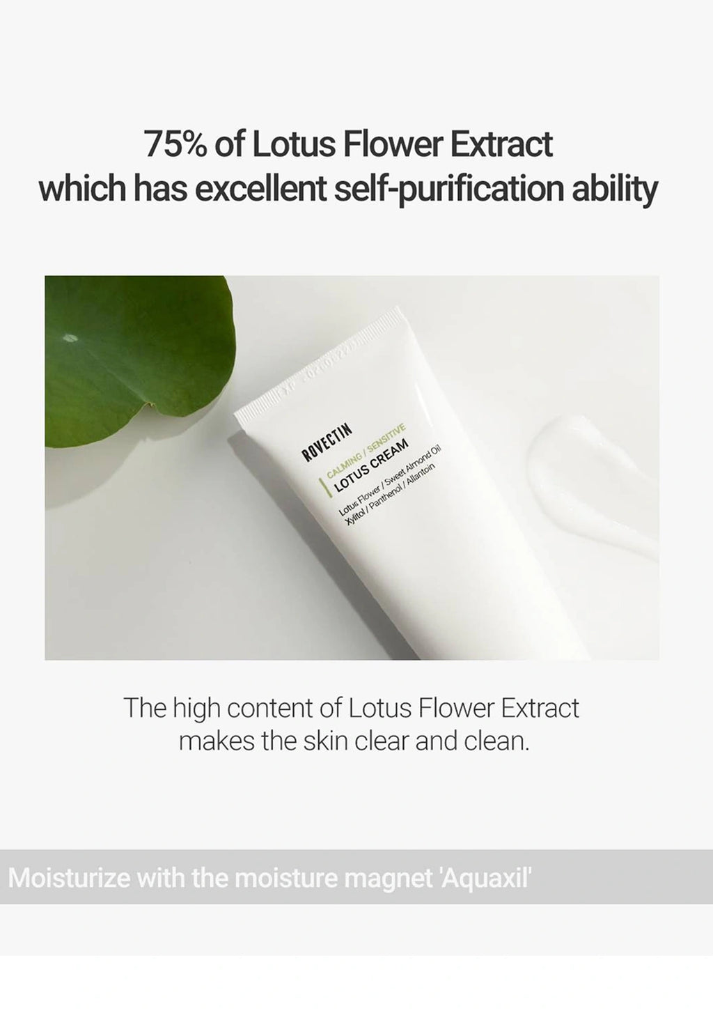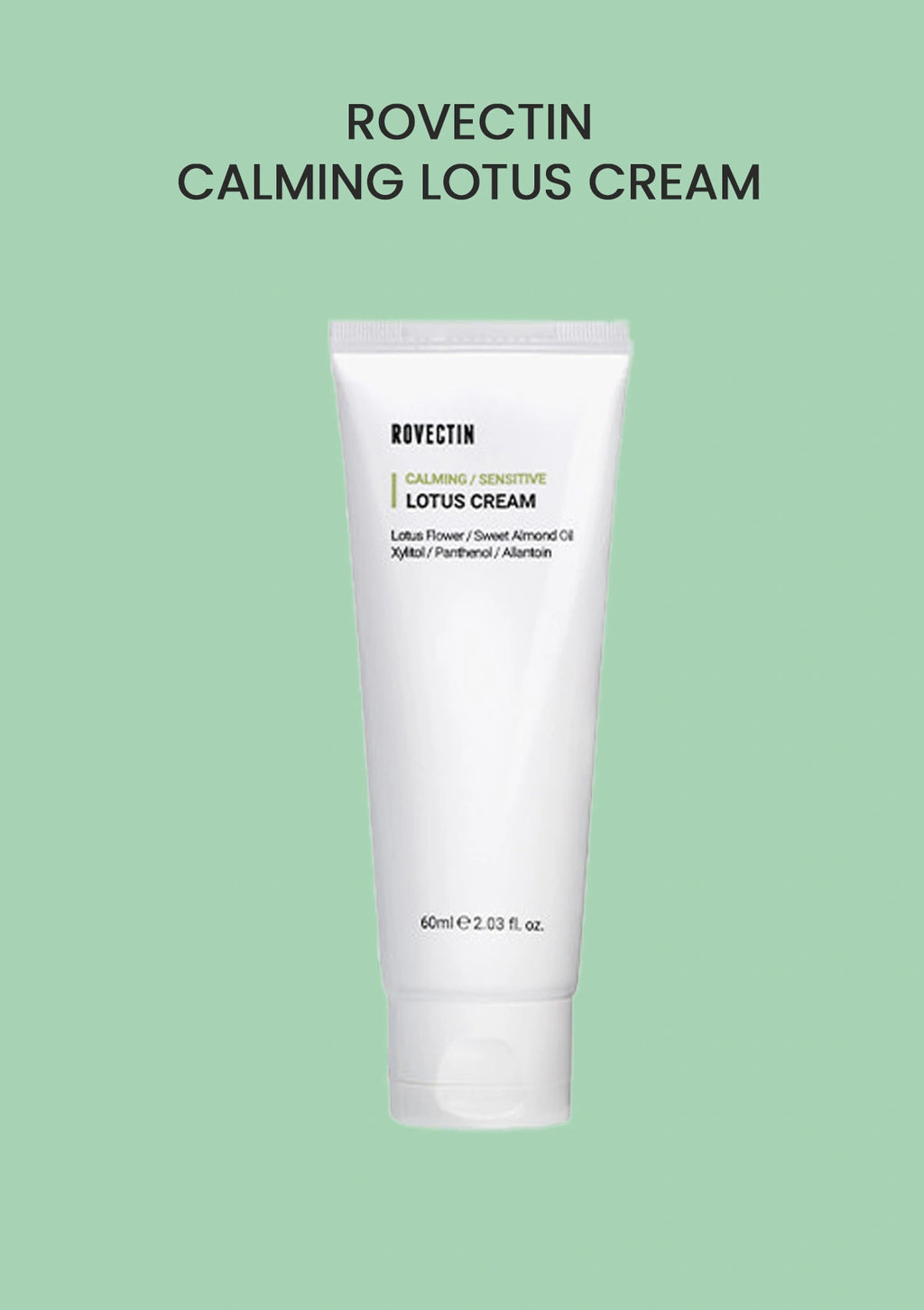 - The Rovectin Calming Lotus Cream is a gentle moisturizer that enhances the look of your skin and hydrates it. It is great for sensitive and dry skin.