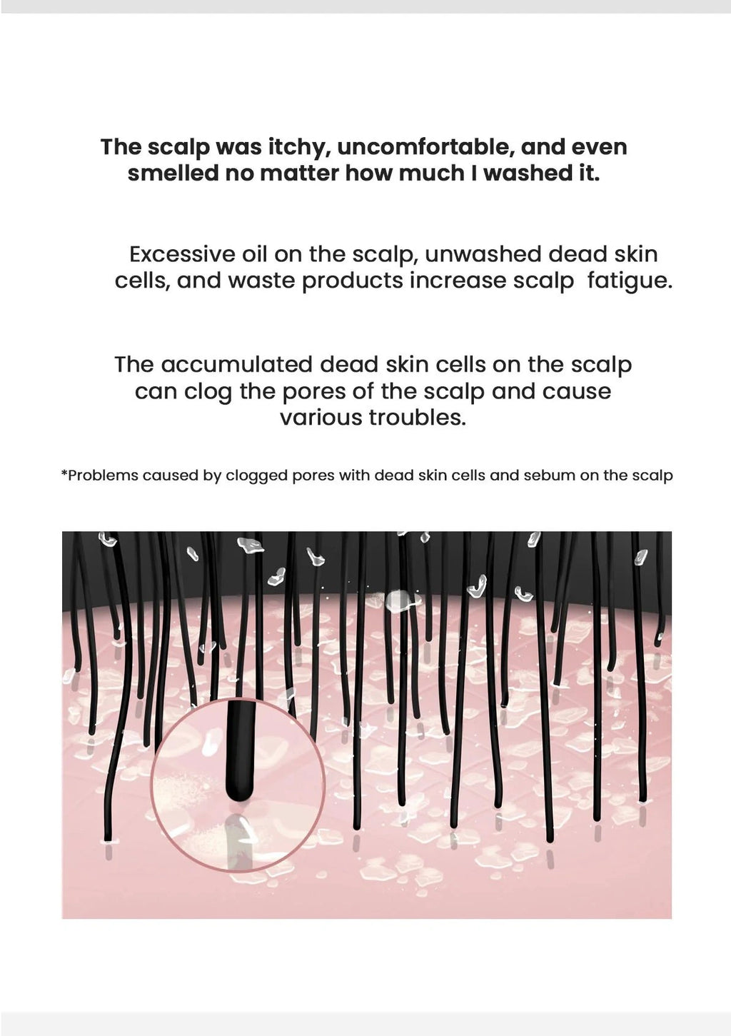 3. Massage thoroughly for 2-3 minutes to help exfoliate the scalp with the foam.