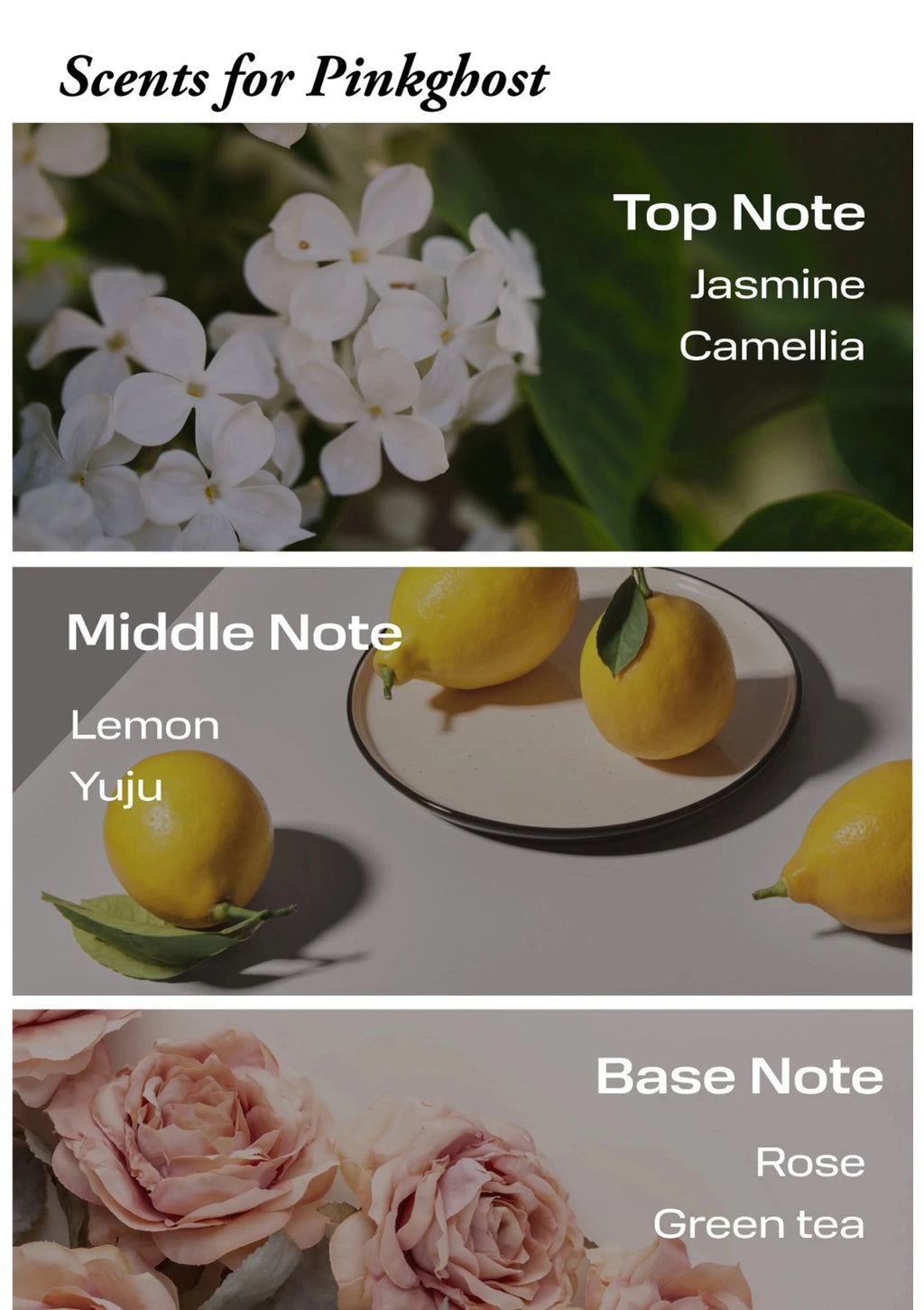 - Pinkghost Organic Hair Si-Love Jasmine/Snow White/Lemon Sorbet: Organic hair syrup, multi-perfume experience, nourishment, protection, lightweight formula.