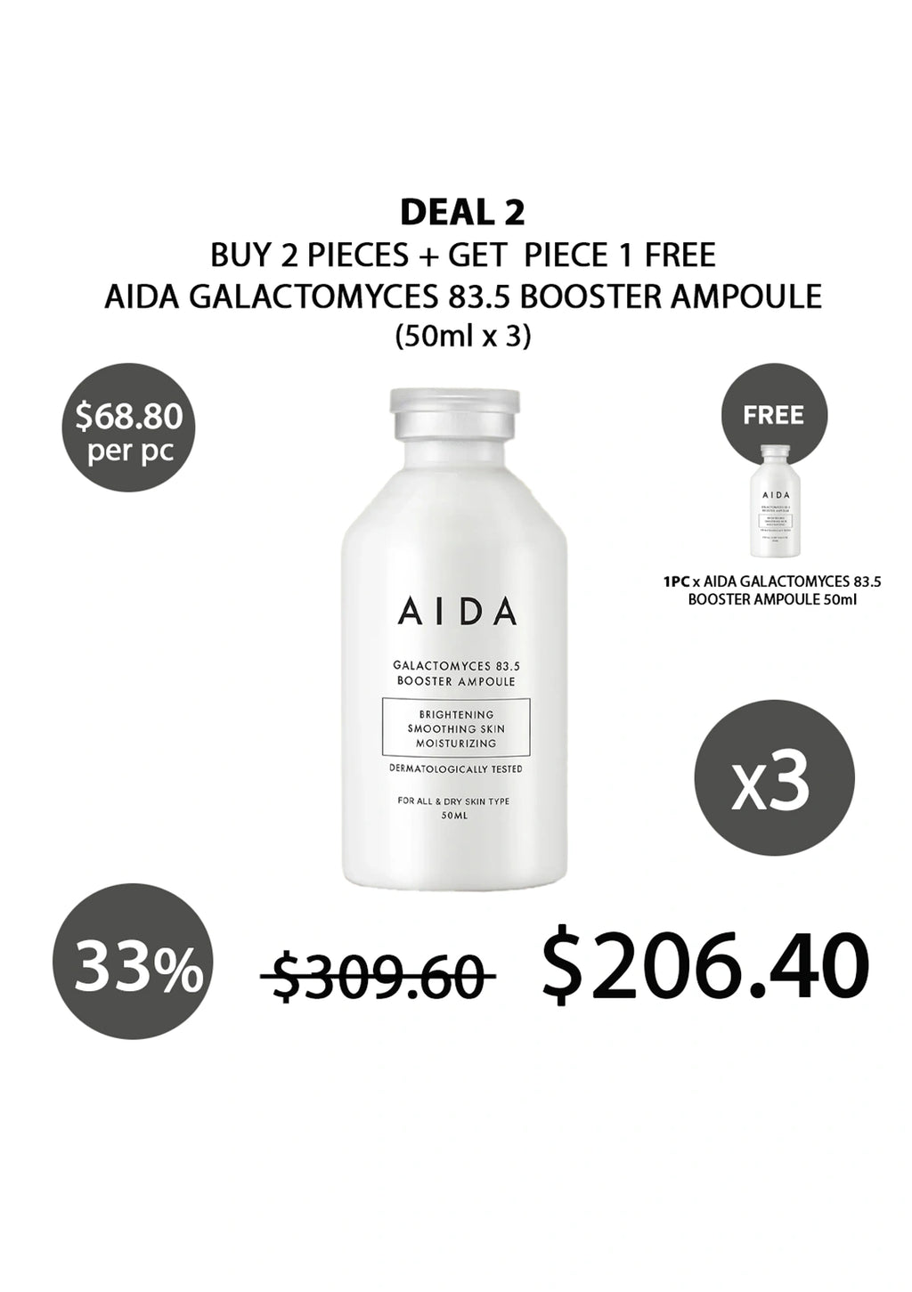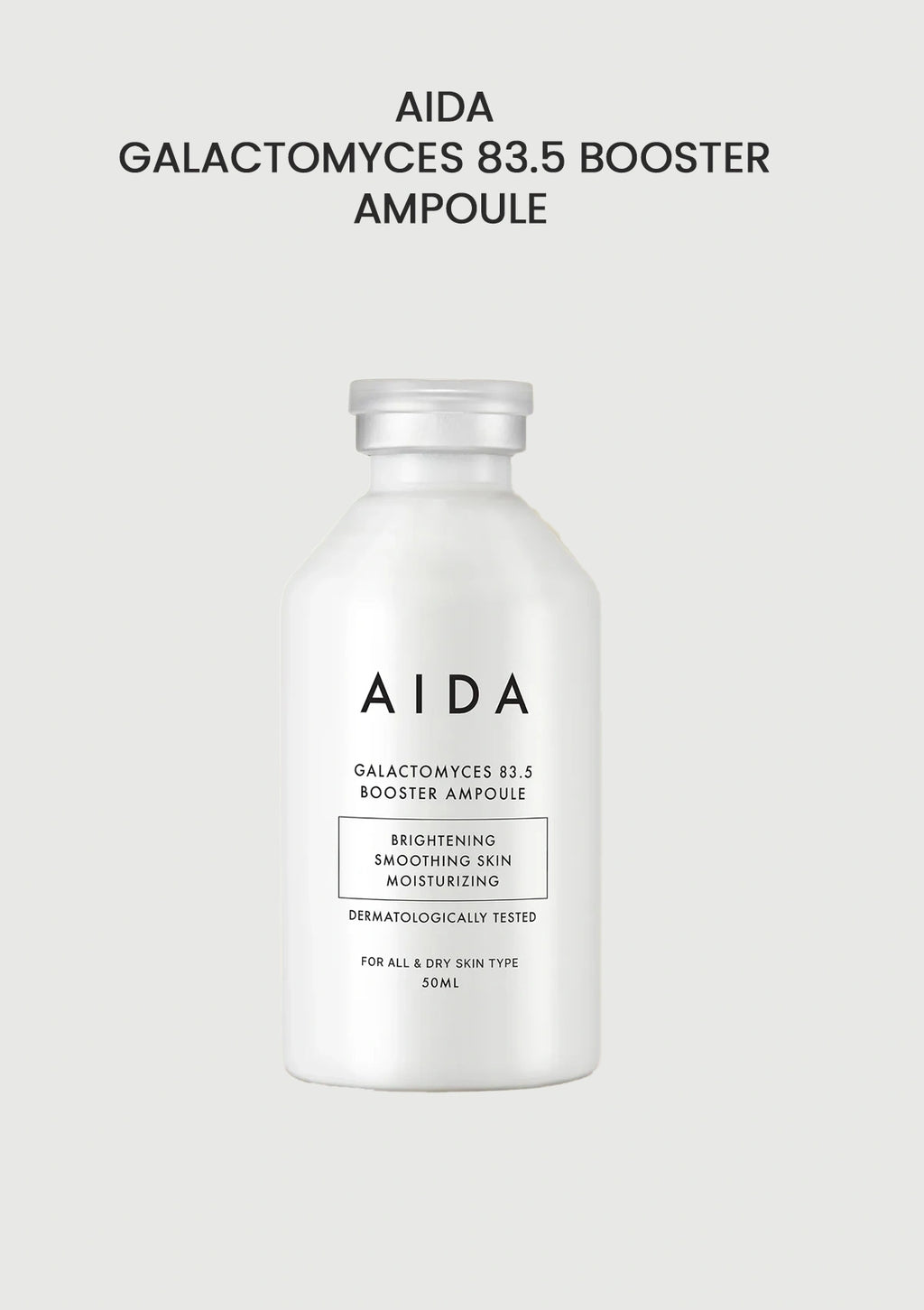 The Aida Galactomyces 83.5 Booster Ampoule is a high-performance skin-revitalizing treatment infused with 83.5% Galactomyces Ferment Filtrate — a cult-favorite K-beauty ingredient known for its ability to brighten, smooth, and balance the skin.