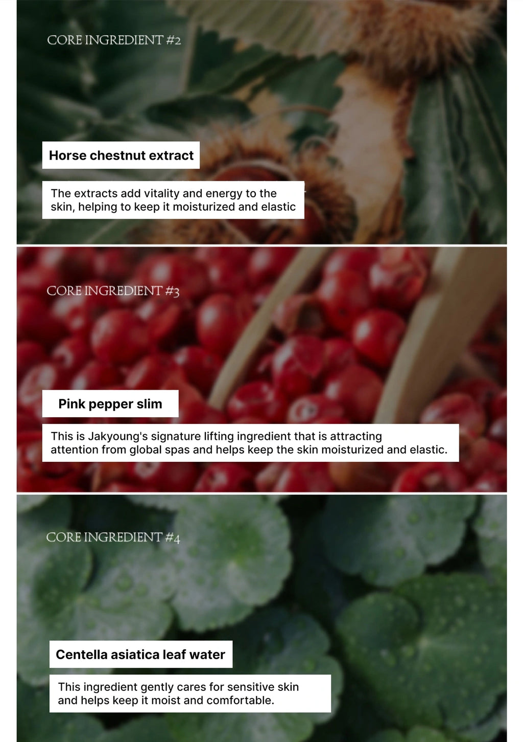A luxurious lifting & firming cream born from 30+ years of expertise at Cheongdam Jakyoung Spa. Powered by skin microbiome probiotics and seven aromatic oils, this creamrestores balance, deeply hydrates, and revitalizes for youthful, glowing skin.