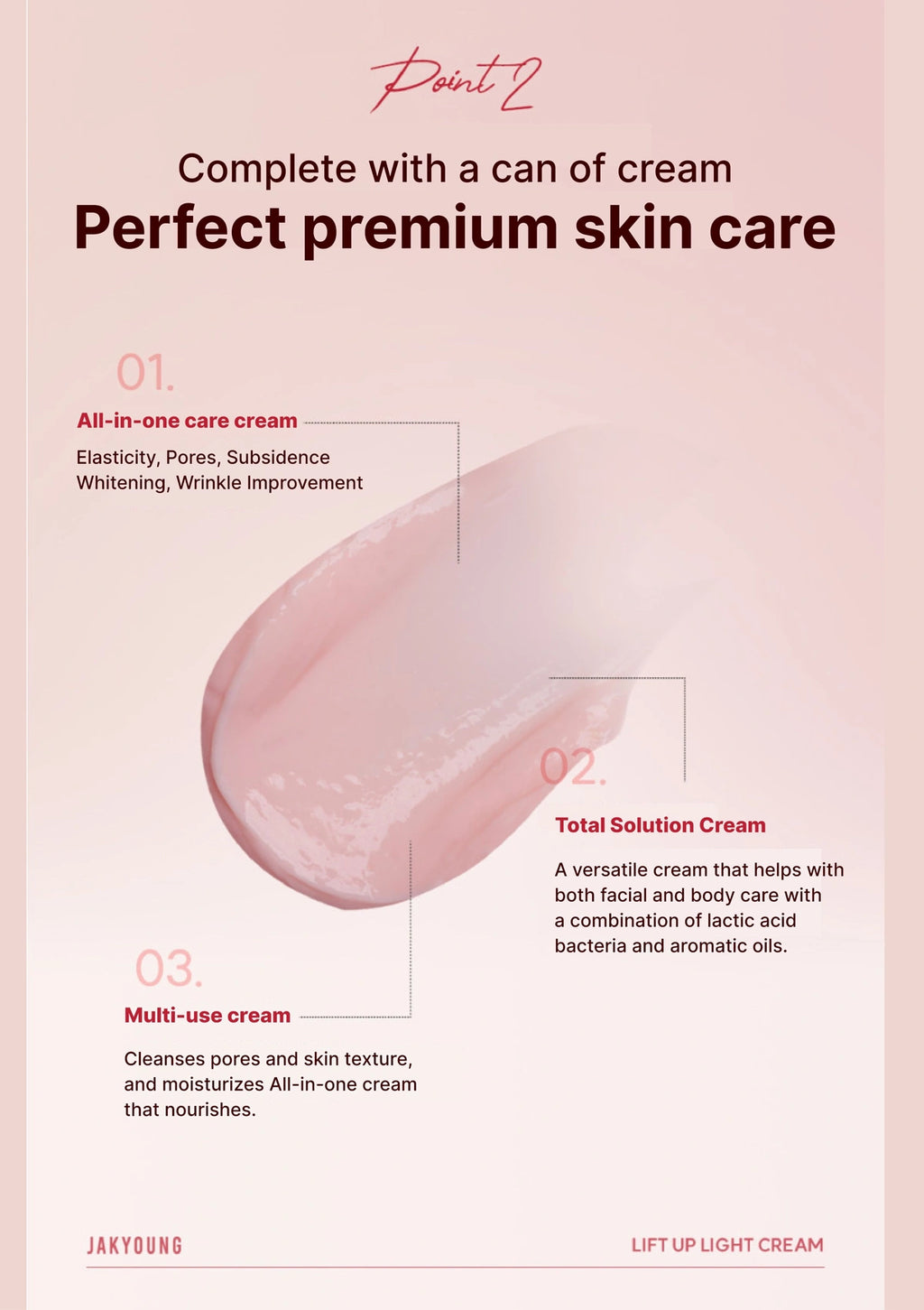 ☁️ Jakyoung Lift Up Light Cream lifts & firms, reduces puffiness, tightens pores, hydrates deeply, brightens skin tone & boosts elasticity—delivering spa-quality radiance at home.