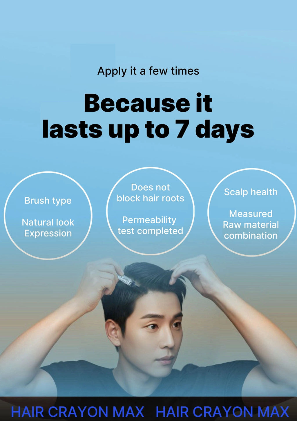 With 3× stronger color adhesion and a shampoo-resistant formula, the Crayon Max ensures seamless coverage that lasts up to 7 days — even through sweating, swimming, or daily washes.