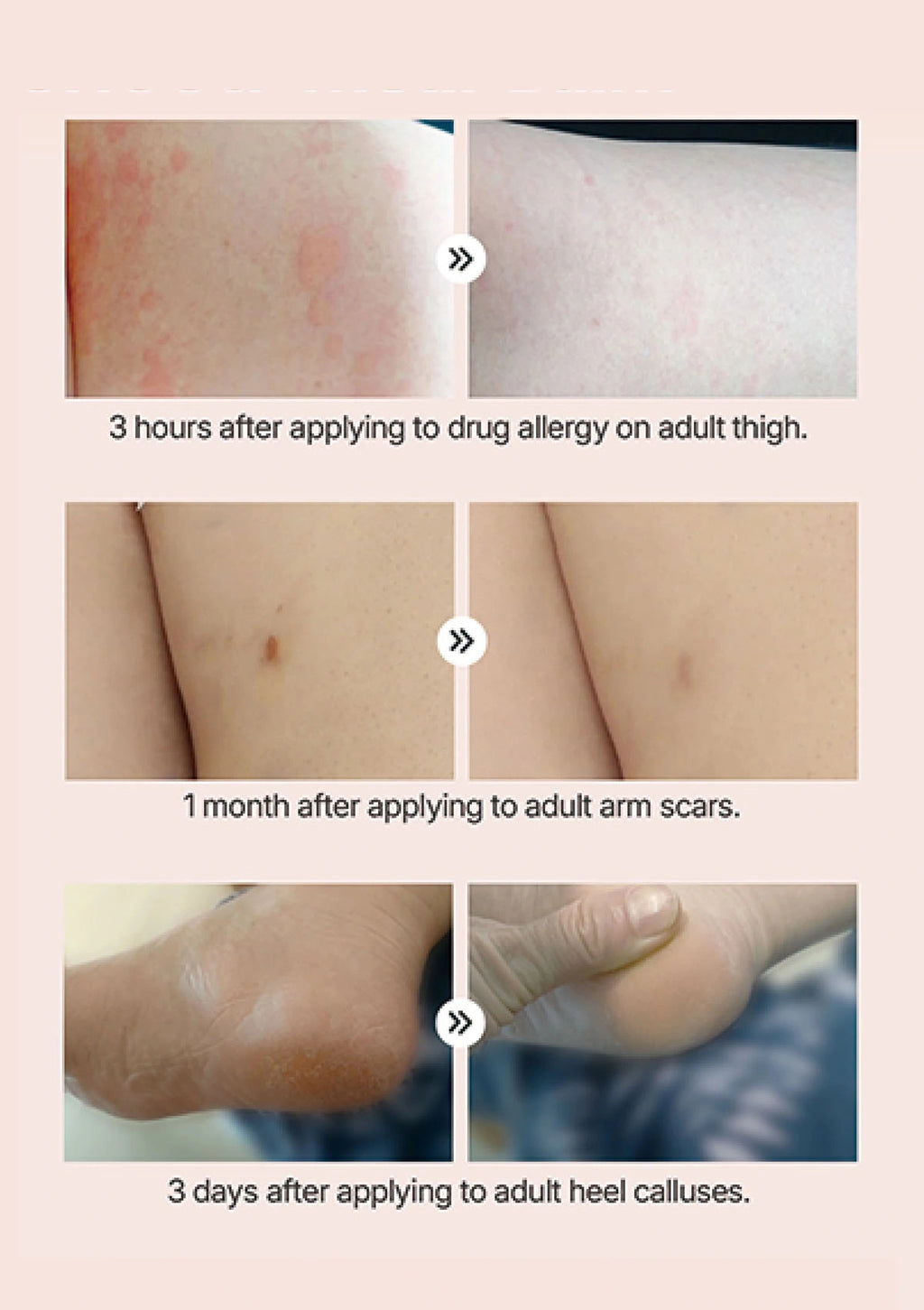 We Medi-Balm: Calms irritation, strengthens the skin barrier, promotes healing, hydrates, and is suitable for face, lips, and body.