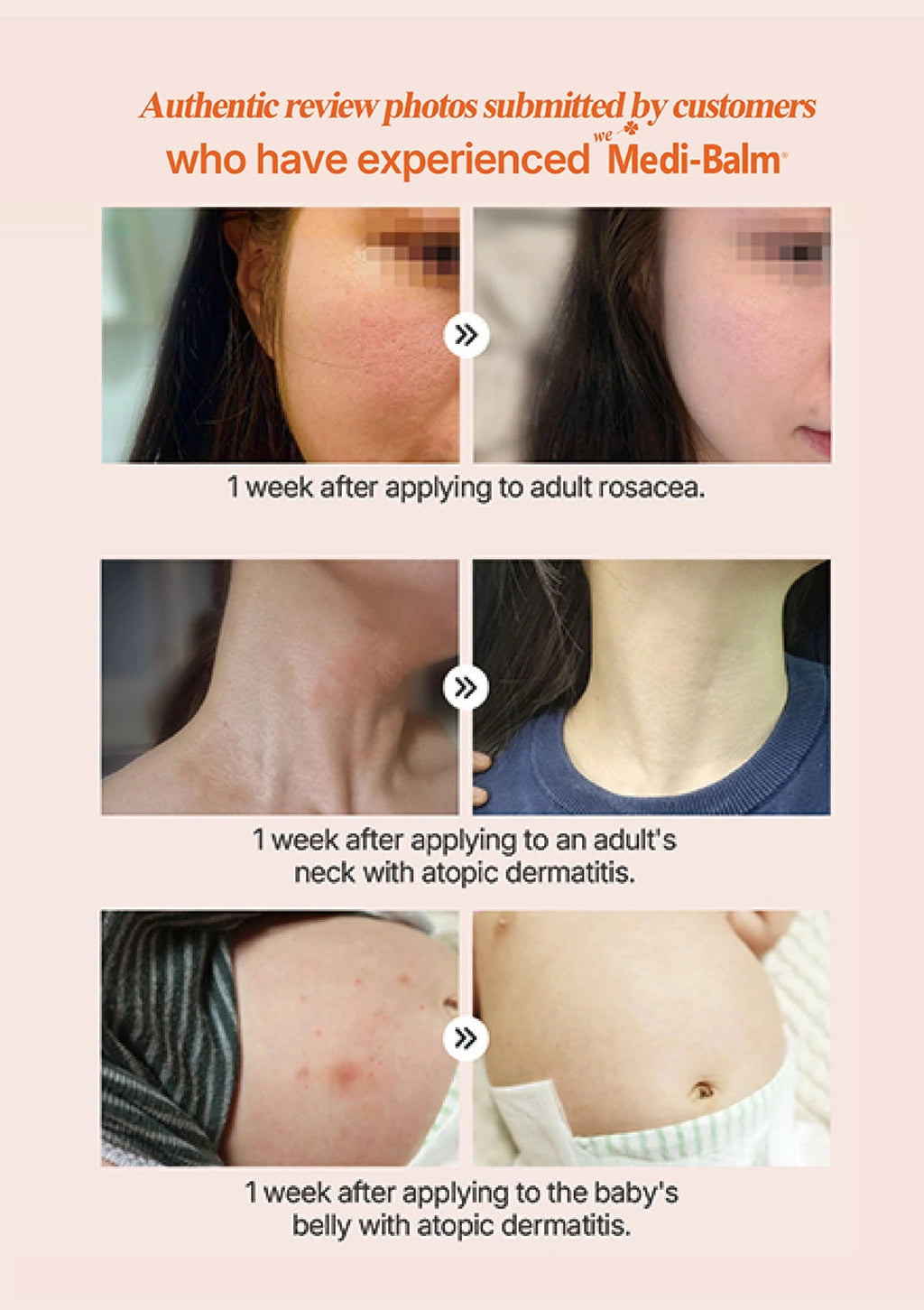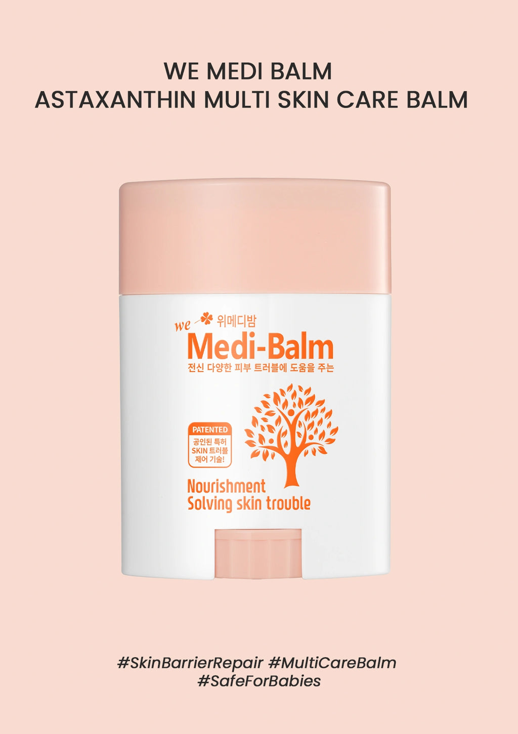 We Medi-Balm is a scientifically developed multi-care balm that calms, moisturizes, and repairs sensitive or troubled skin. It contains astaxanthin, a powerful antioxidant 6000 times stronger than vitamin C, along with chitosan, sulfur, menthol, and tocopherol to reduce inflammation, soothe irritation, and improve texture. It targets dry patches, sensitive areas, and skin prone to breakouts or eczema while strengthening the skin barrier and providing long-lasting hydration. Safe for all ages, including infants and pregnant women, it suits even the most delicate skin.