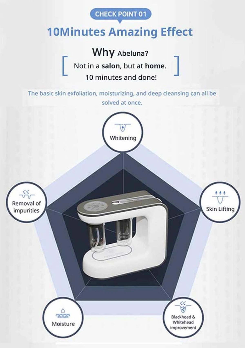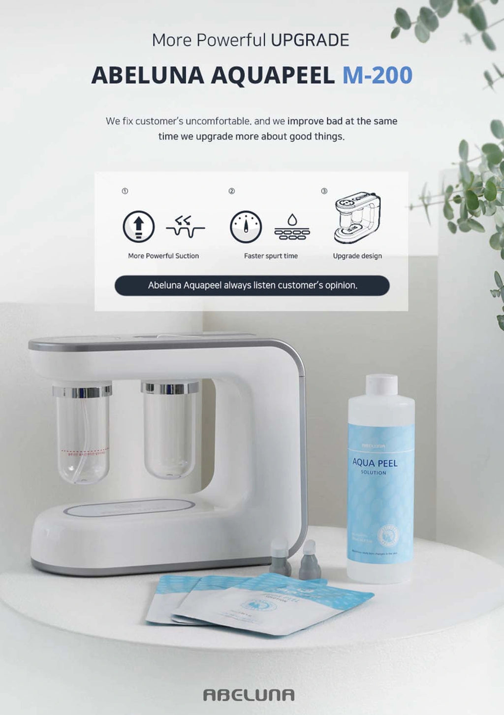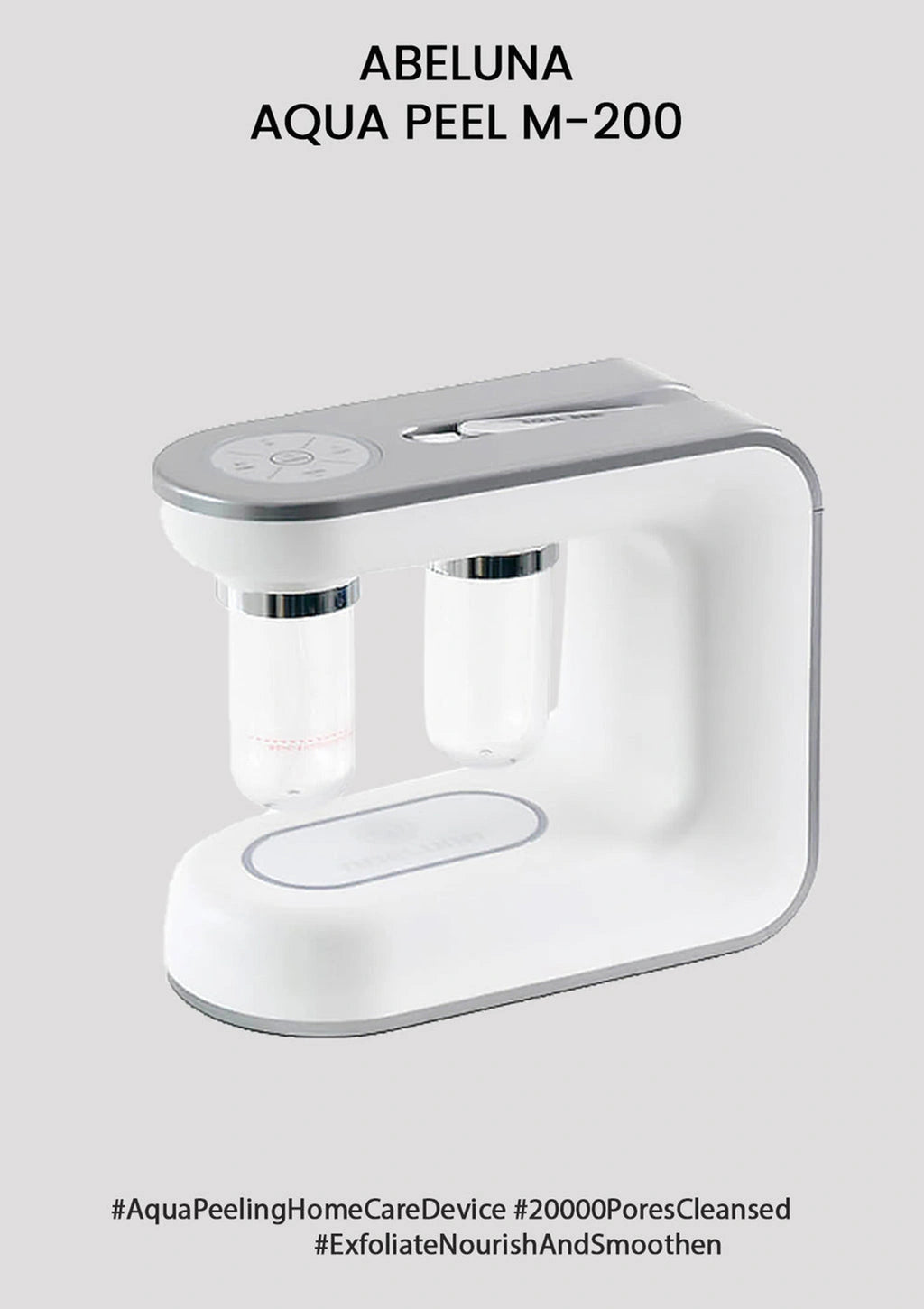 Abeluna Aqua Peel M-200, is a revolutionary at-home device that provides the same brilliant results as professional, in-office hydra derma abrasion treatments. Vacuum suction is combined with a hydrating solution to create a vortex to exfoliate, deep cleanse and hydrate the skin.