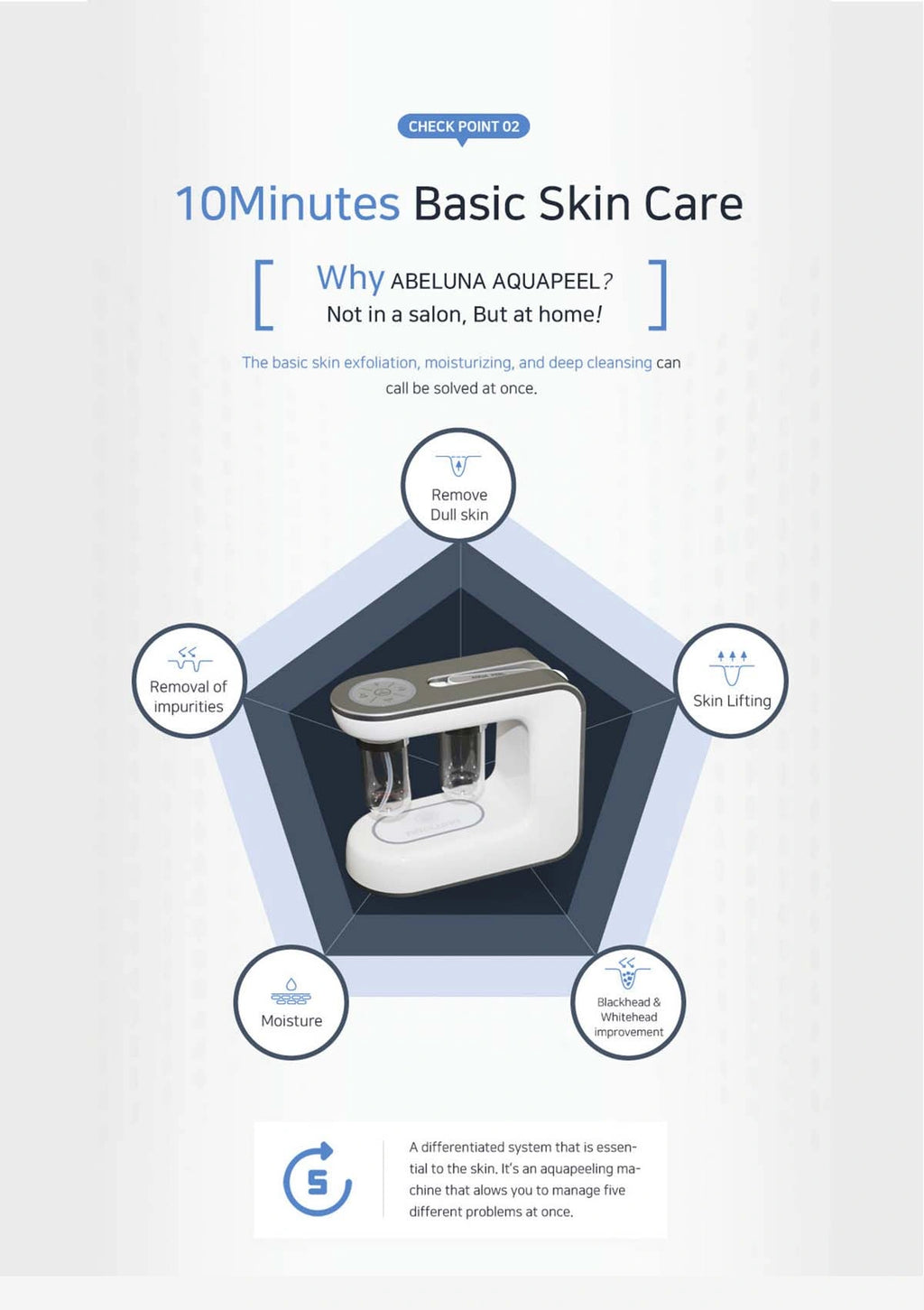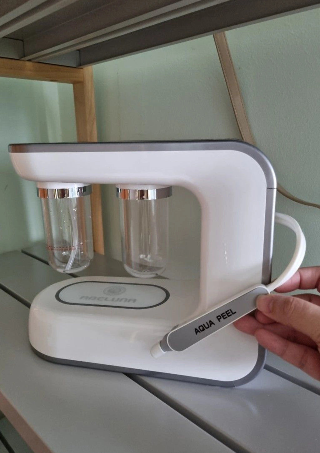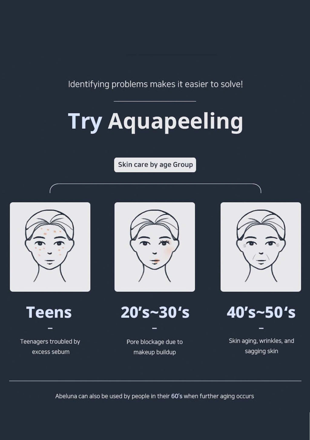 Abeluna Aqua Peel M-200, is a revolutionary at-home device that provides the same brilliant results as professional, in-office hydra derma abrasion treatments. Vacuum suction is combined with a hydrating solution to create a vortex to exfoliate, deep cleanse and hydrate the skin.