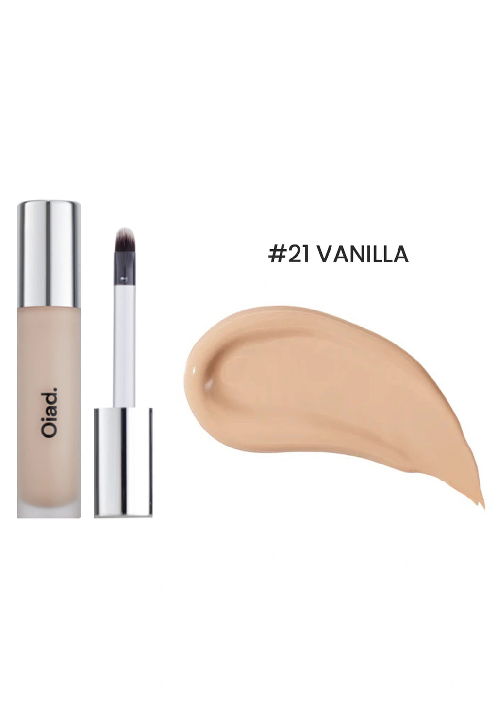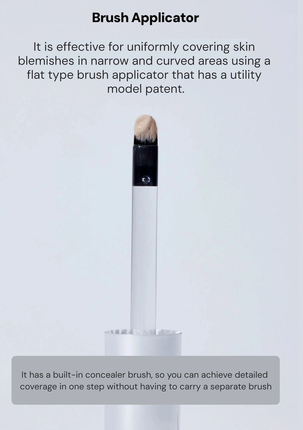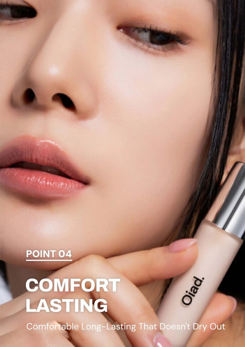 Oiad Cover Perfecting Mirror-Brushed Concealer SPF 30 PA++ gives smooth, natural coverage that lasts up to 12 hours. The flat brush tip makes it easy to apply on curves and small areas—perfect for dark circles, blemishes, contouring, and highlighting.
