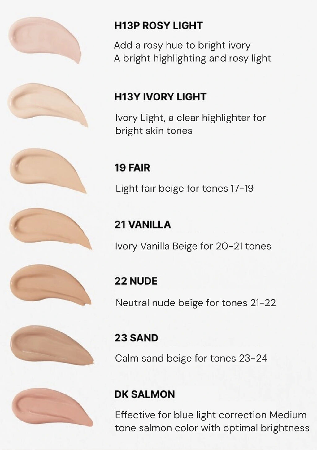 #H13P Rosy Light: Cool rosy tone for brightening and highlighting fair skin.
