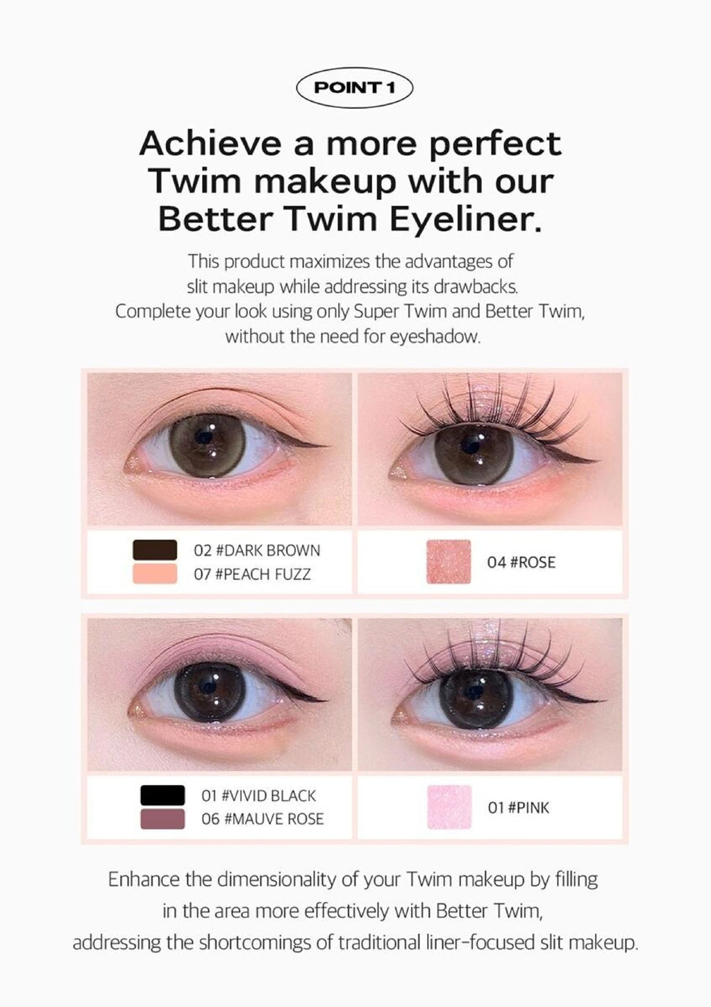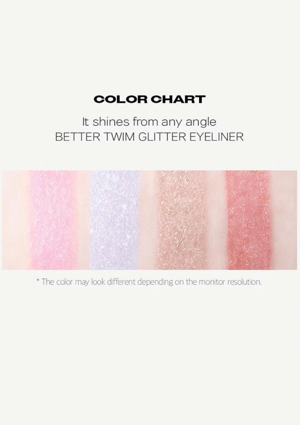A vibrant glitter eyeliner that delivers a sparkling finish with a smooth gel texture and all-day wear. The ultra-fine brush allows precise application for bold or subtle shimmer looks, perfect for under-eye “aegyo-sal” highlights or accent lines.