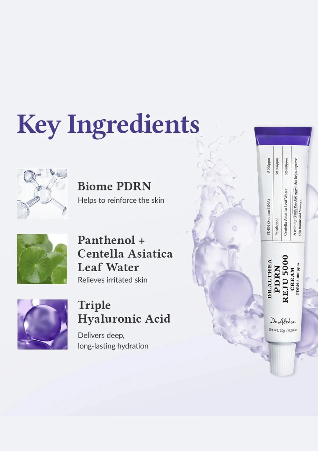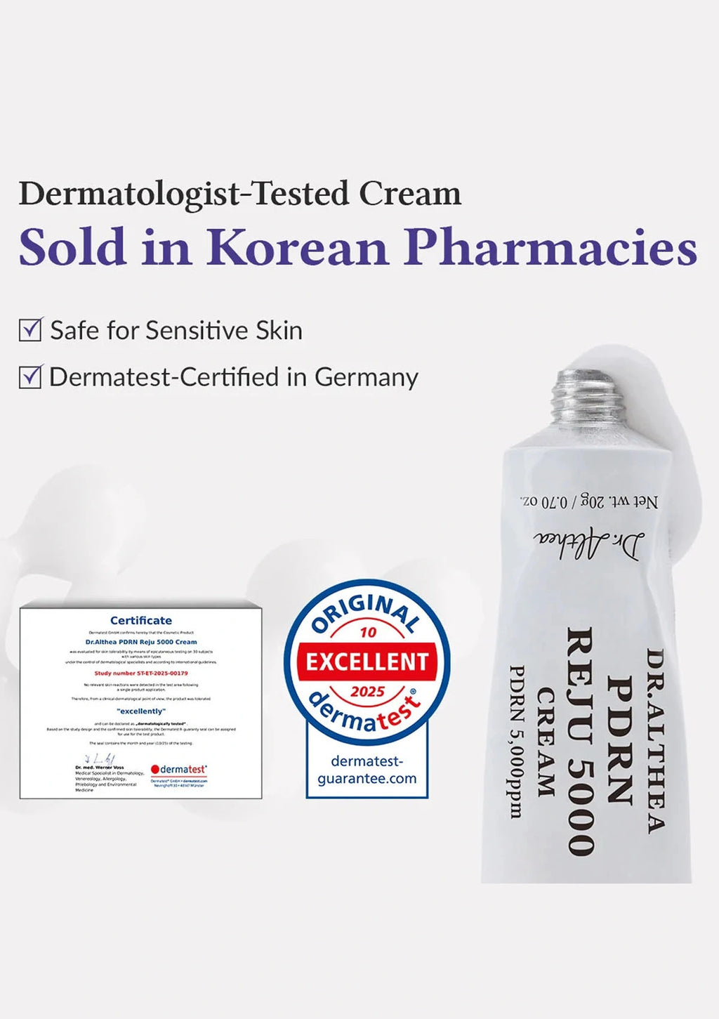 Dr. Althea PDRN Reju 5000 Cream is a lightweight ointment-style moisturiser designed to support skin barrier repair, improve texture and enhance the appearance of firmness. Despite its rich cream format, it absorbs comfortably into the skin without leaving a greasy residue, making it suitable for daily use even in warm, humid climates.