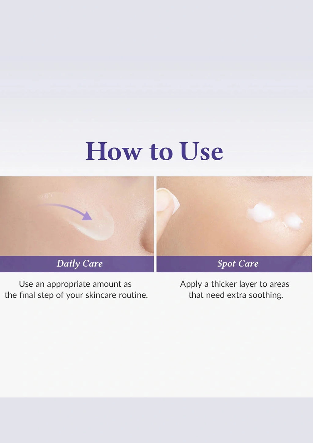 Formulated with probiotic-derived PDRN and Centella Asiatica Leaf Water, this cream helps soothe visible irritation while reinforcing the skin’s natural resilience. Panthenol and multiple forms of hyaluronic acid provide long-lasting hydration, helping skin feel plump, smooth and balanced throughout the day.