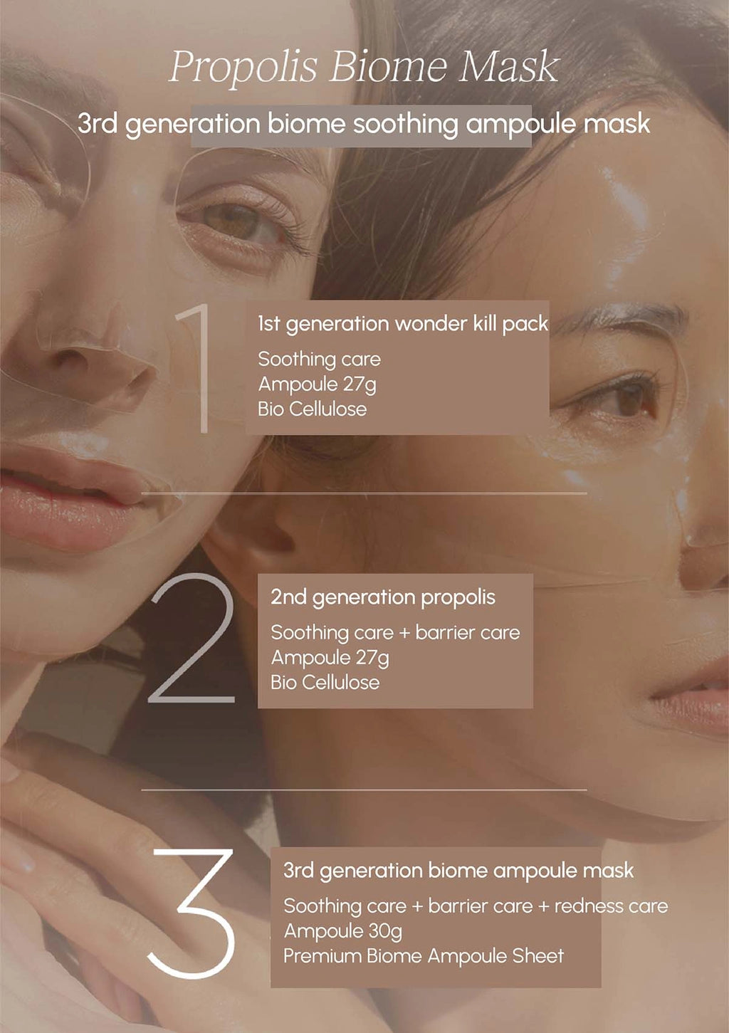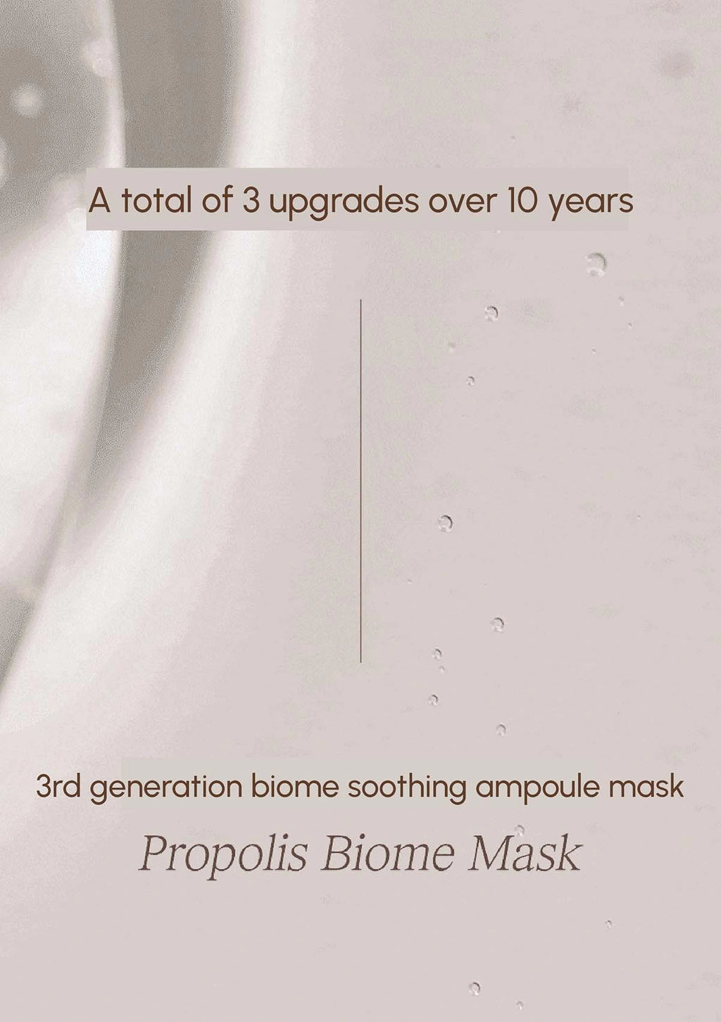 Aida Propolis Biome Mask: Cooling, reduces redness, and intense hydration, strengthens the barrier, and adheres well.