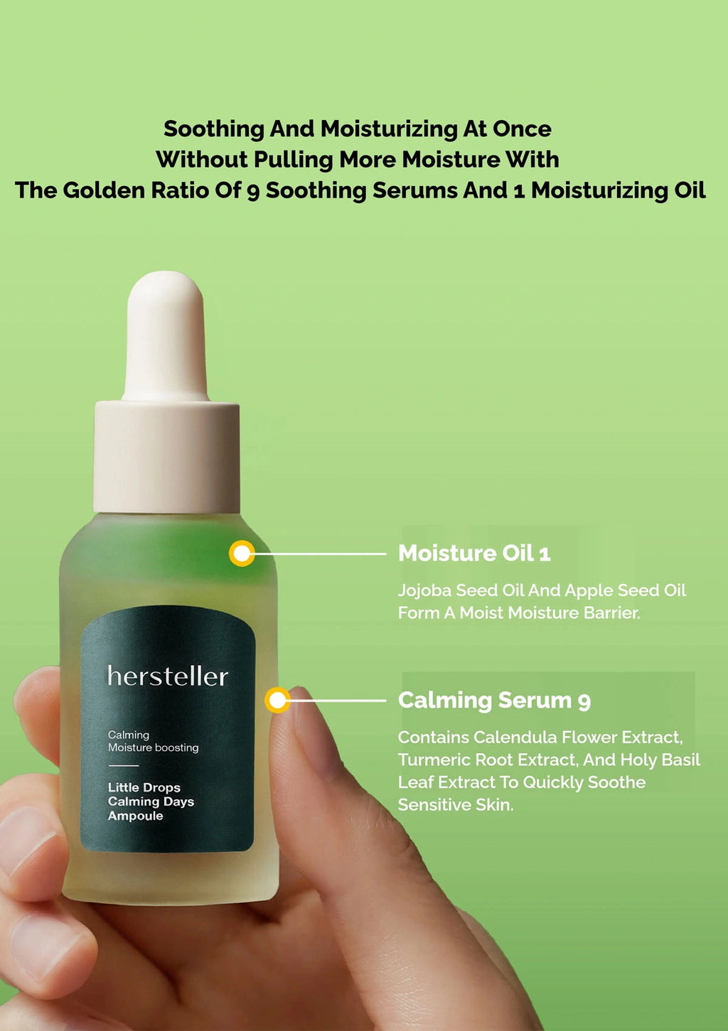 Next, apply the Hersteller Little Drops to soothe and hydrate your skin. This ampoule reduces redness and irritation while balancing the skin's moisture levels, leaving it calm and nourished.