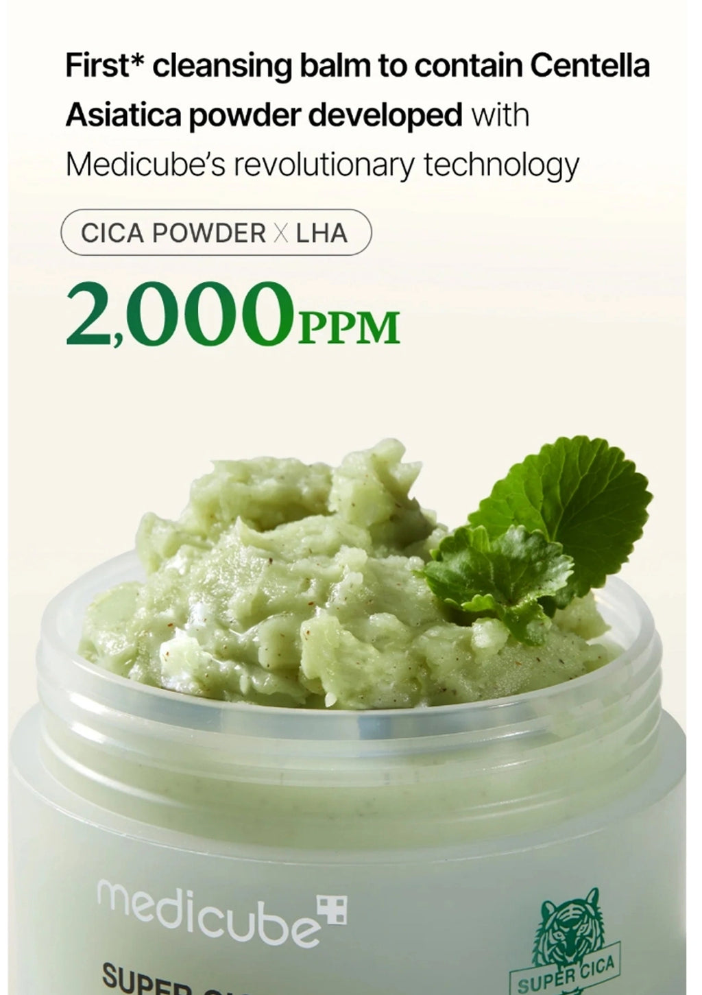 Cleansing balm with Centella Asiatica powder and Medicube branding on a light background