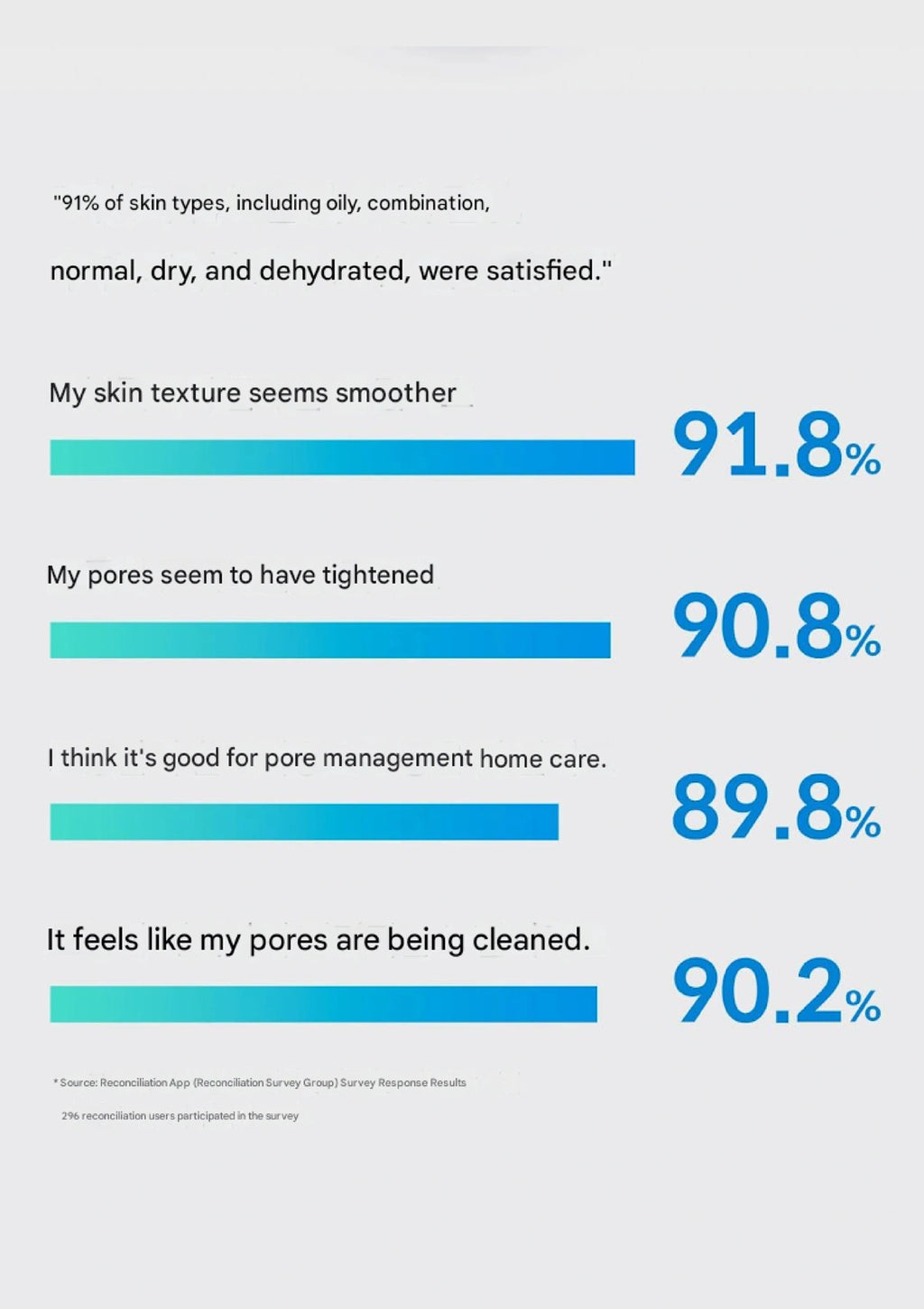 Bar chart showing skin texture improvement percentages on a light gray background