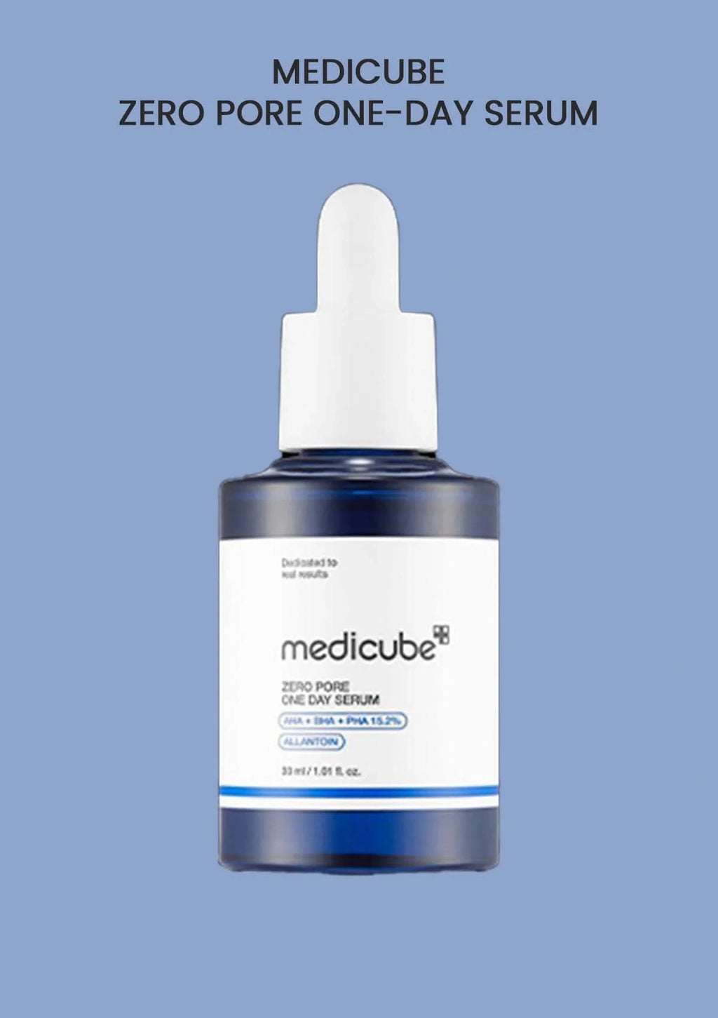 Medicube Zero Pore One-day Serum bottle with product details on a light gray background