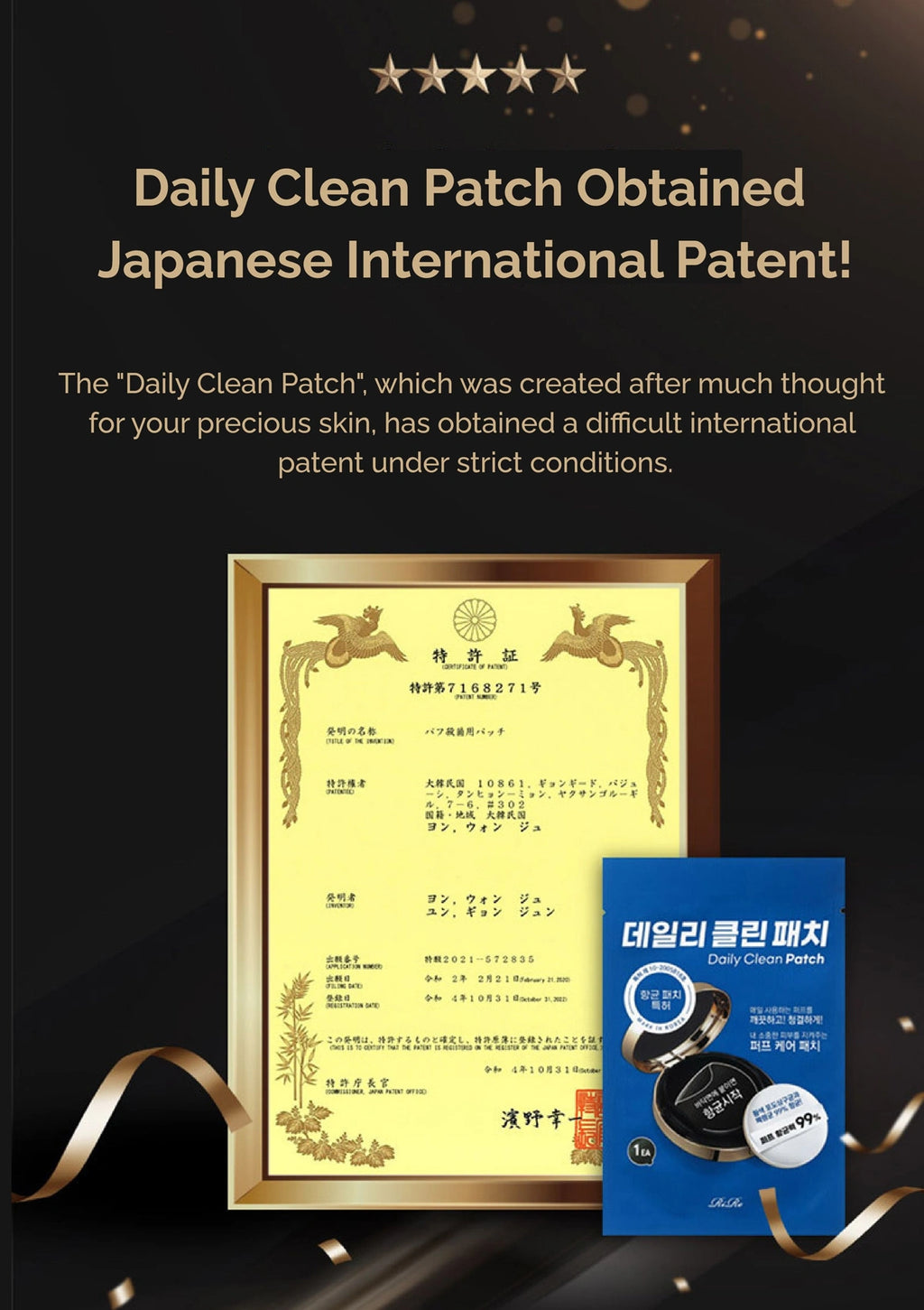 Advertisement for Daily Clean Patch with product image and features on a blue background
