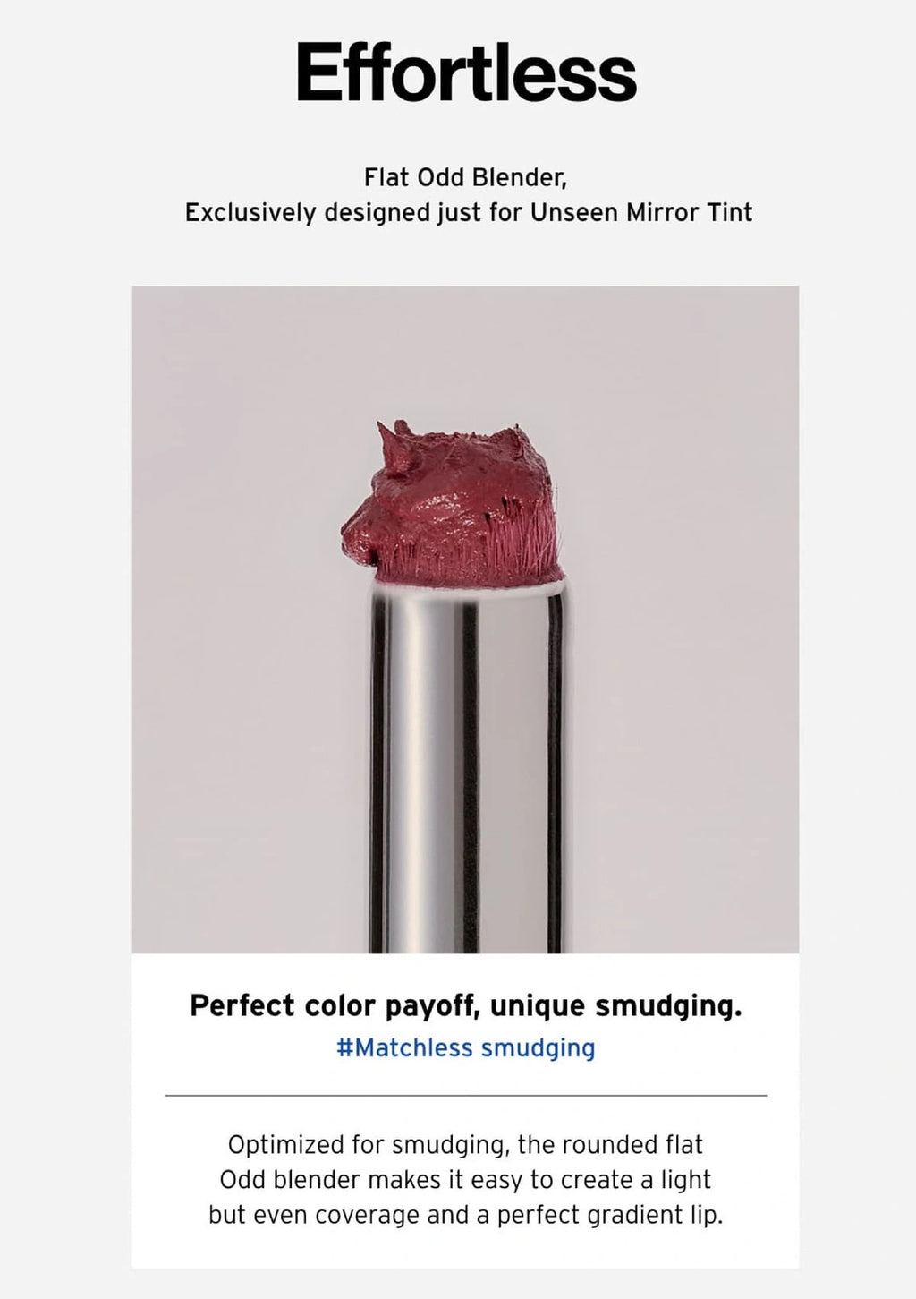 With an innovative, flat Odd Blender applicator designed to optimize color payoff and ensure a seamless application, it creates the perfect gradient lip effortlessly. The result is a natural-looking overlip style with a soft, silky matte gradient.