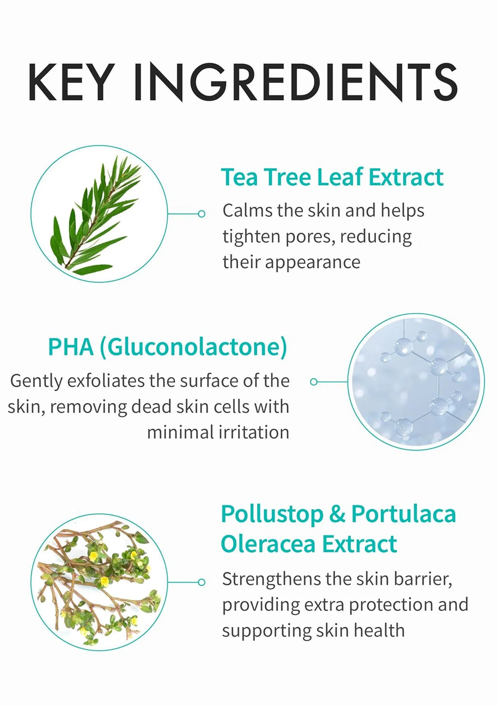 The inclusion of PHA (gluconolactone) allows for mild exfoliation that helps lift away dead skin cells and impurities without the harshness commonly associated with stronger acids. This makes it suitable for regular use, even on sensitive or stressed skin. Botanical extracts such as centella asiatica, calendula, fig fruit, and tea tree leaf extract help calm visible redness and promote a clearer, more balanced complexion.