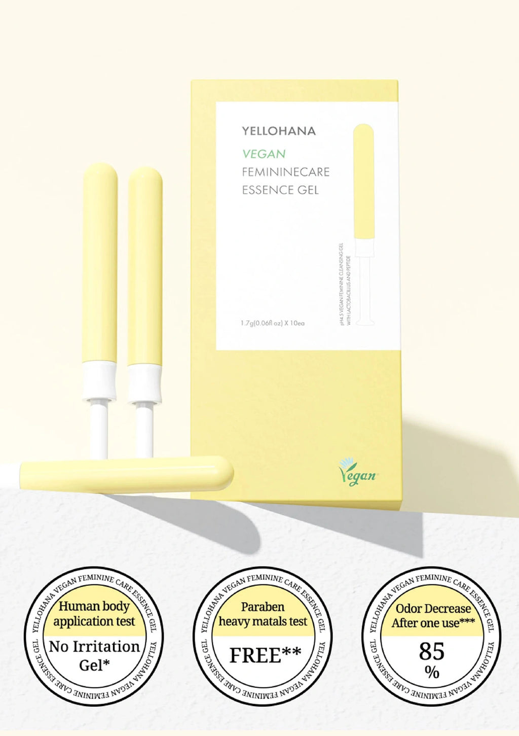 Step 1: Intimate Care, Naturally Yellohana Vegan Feminine Care Essence Gel, a gentle, pH-balancing cleanser for daily intimate care.