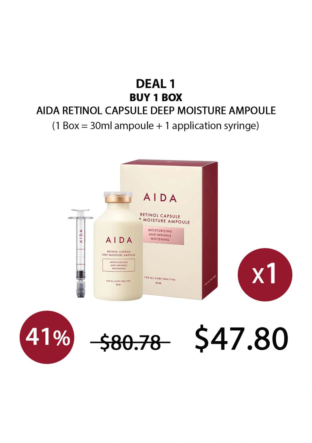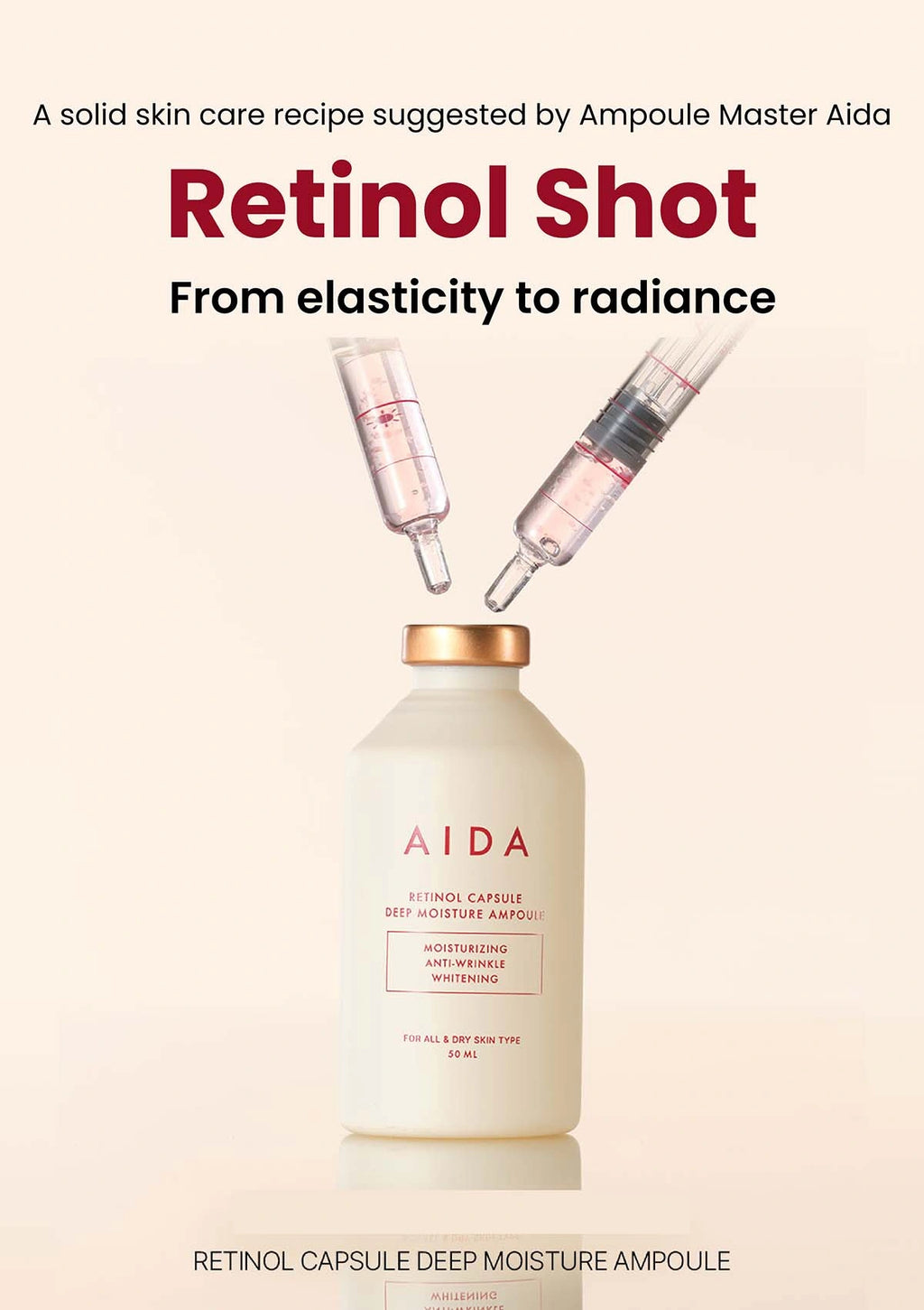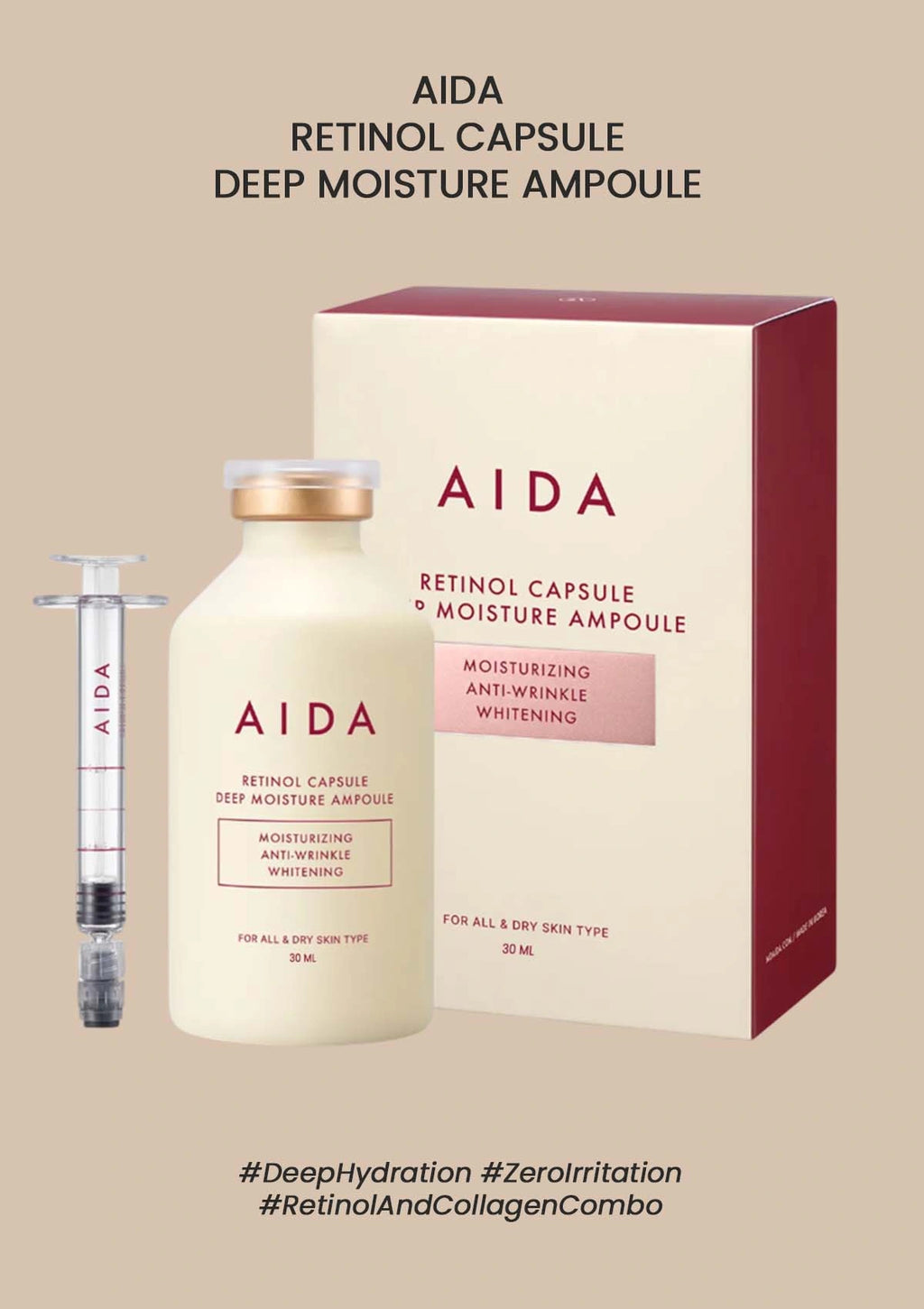 Aida Retinol Capsule Deep Moisture Ampoule – Targets fine lines, sagging, and improves skin elasticity. (Use 2-3 times a week at night to avoid irritation.)