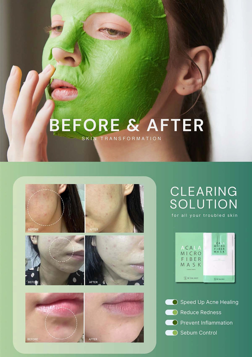 Be’Balance Acala Microfiber Mask is a potent skincare solution designed to combat acne and control excess oil with Alpha Lipoic Acid (ALA), an antioxidant 40,000 times stronger than Vitamins C and E. Its triple-action formula targets blemishes, mattifies skin, and reduces oiliness, providing a clearer, balanced complexion. Combining multiple treatments in one convenient mask, it delivers effective, comprehensive care for acne-prone and oily skin.