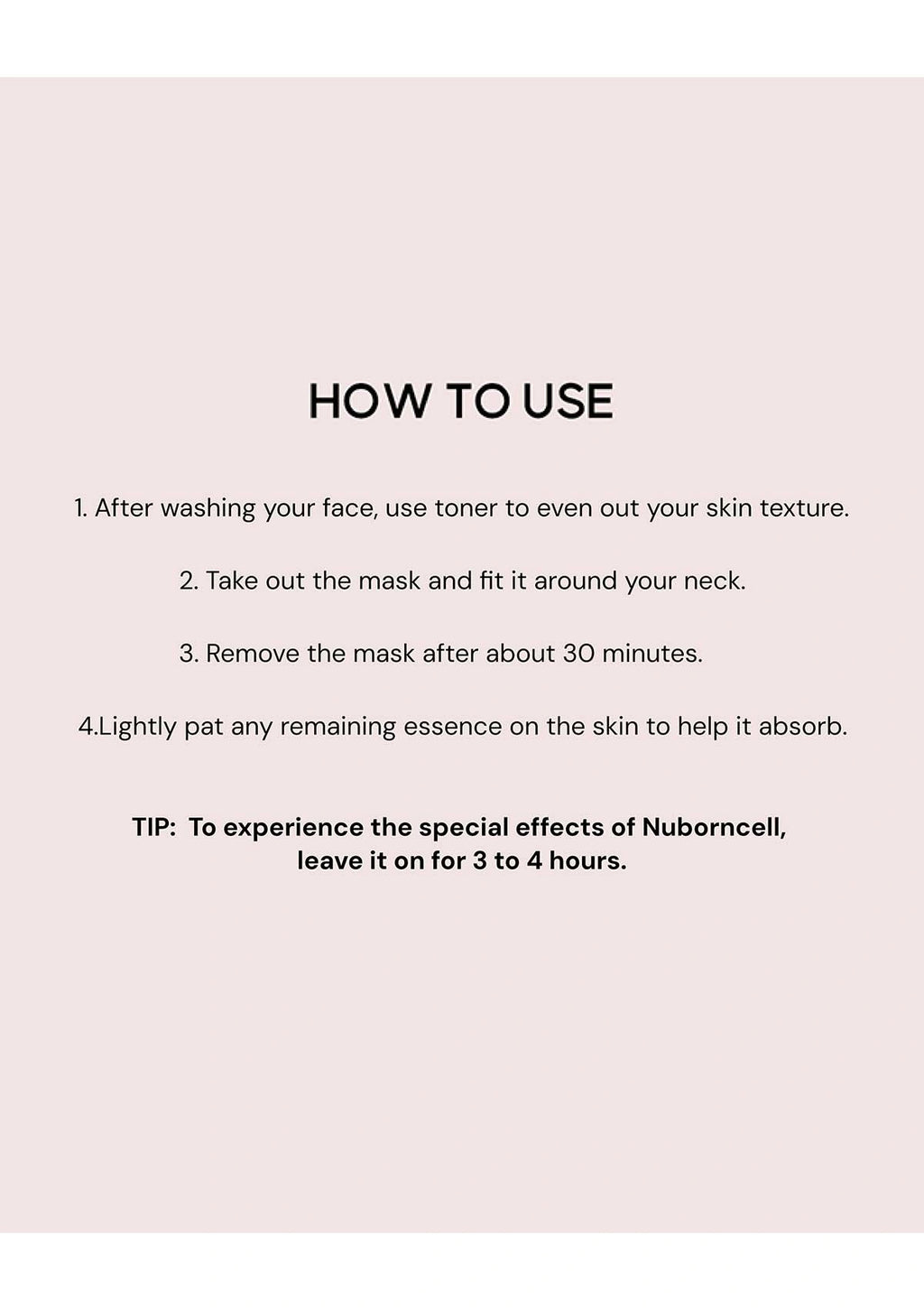 TIP: For maximum benefits, extend wear time to 3–4 hours or overnight to fully experience Nuborn cell’s advanced formula, leaving your skin firmer, smoother, and deeply revitalized.