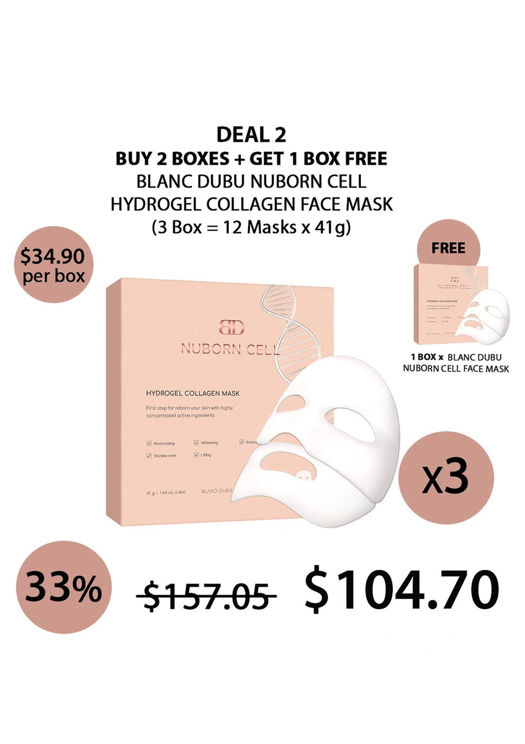 Blanc Dubu Nuborn Cell Hydrogel Collagen Face Mask (1 Box = 4 Masks x 41g)