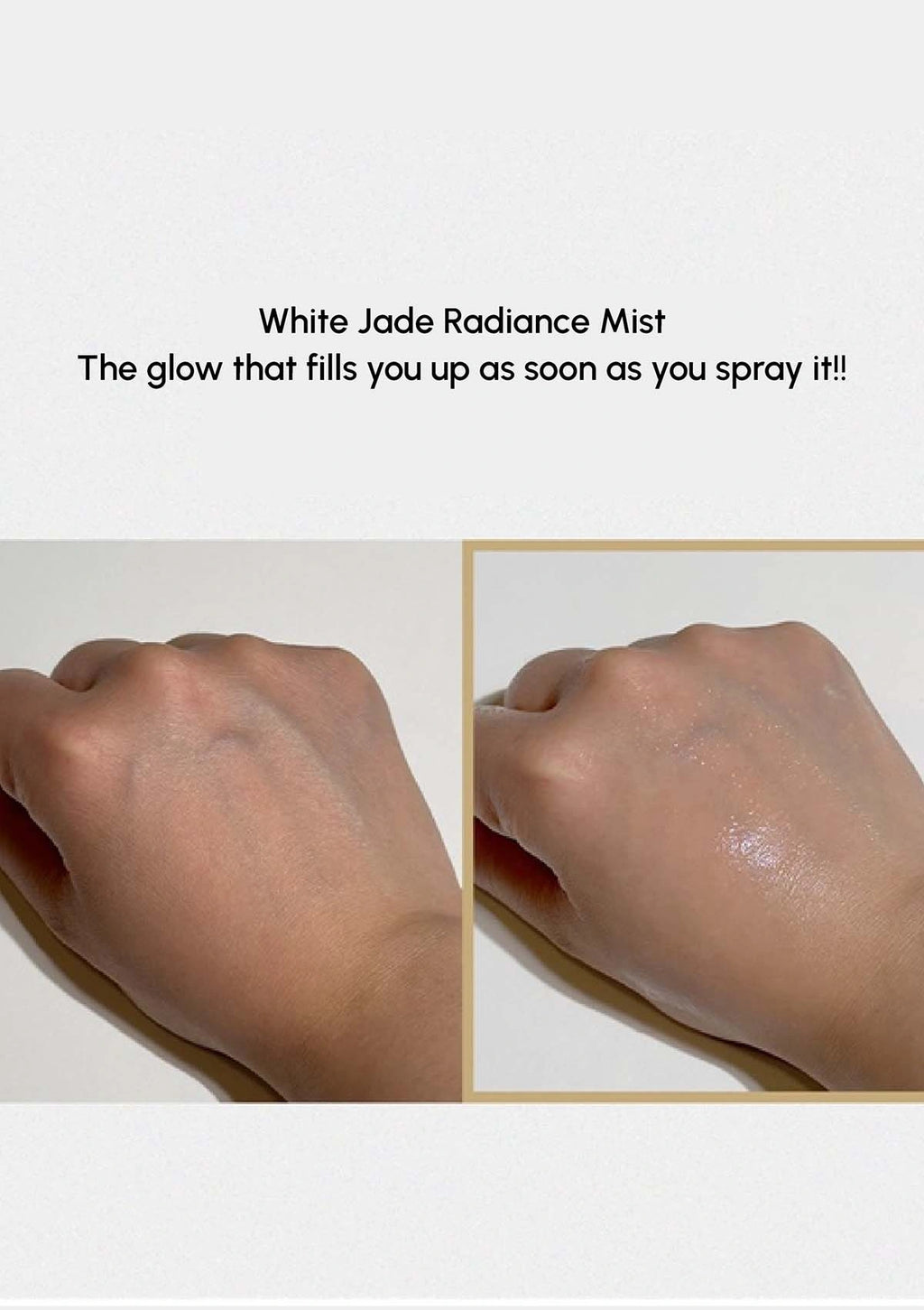 Hand with White Jade Radiance Mist applied, showing a glowing effect.