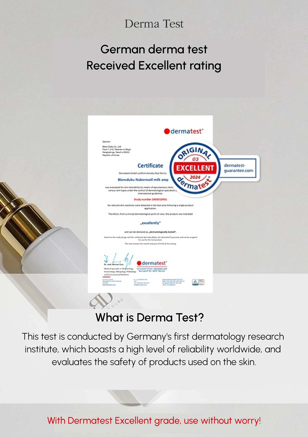 The Blanc Dubu Nuborn Cell Milk Ampoule Mist, is a revolutionary skincare solution that combines the benefits of a cream and ampoule in one easy-to-use mist. This dual-function formula contains milk protein extract and patented Melazero V2, designed to inhibit melanin production and promote its decomposition, maximizing your skin's brightening potential. The mist provides deep hydration, anti-wrinkle benefits, and a radiant white jade glow effect, ensuring your skin stays smooth, moist, and luminous. Clinically proven and awarded the Dermatest Excellent grade for safety, this mist is perfect for those seeking immediate and long-lasting hydration.