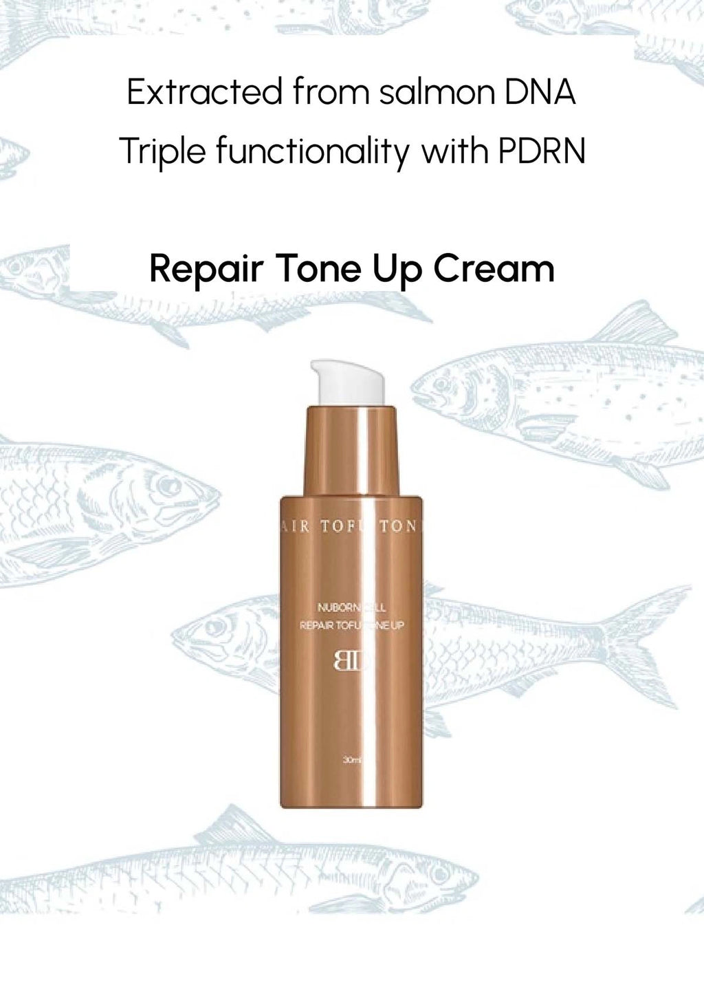 Formulated with a unique blend of ingredients, including salmon DNA extracted through a meticulous process, the Repair Tone Up Cream introduces PDRN (Polydeoxyribonucleotide), a substance purified from DNA that revitalizes the skin. This high-quality raw material, obtained in limited quantities per salmon, enhances the levels of ECF, IGF, FGF, and VEGF in cells, promoting skin health and radiance.