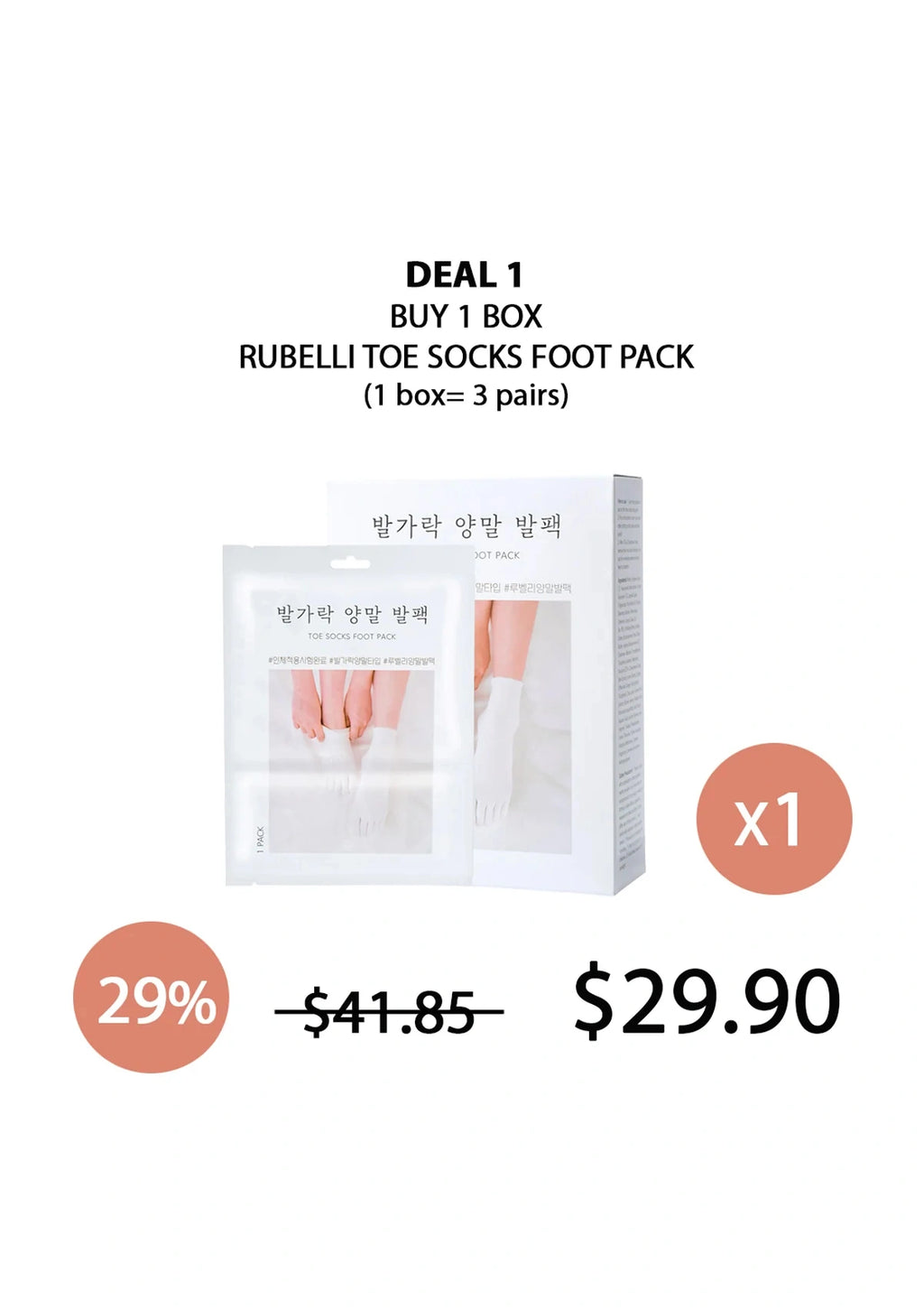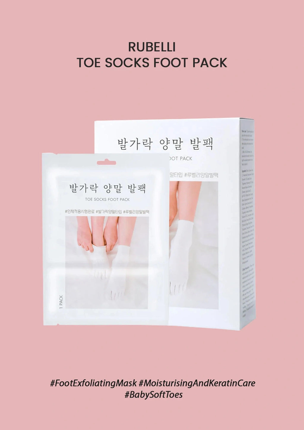 [RUBELLI] TOE SOCKS FOOT MASK, is a snug fit toe sock, that intensively workes on your feet! It closely envelops your feet like a second skin and works on your feet every nook and corner! Further, each soak is loaded with 40g essence that delivers intense moisture and nourishment while it exfoliates and removes callus!