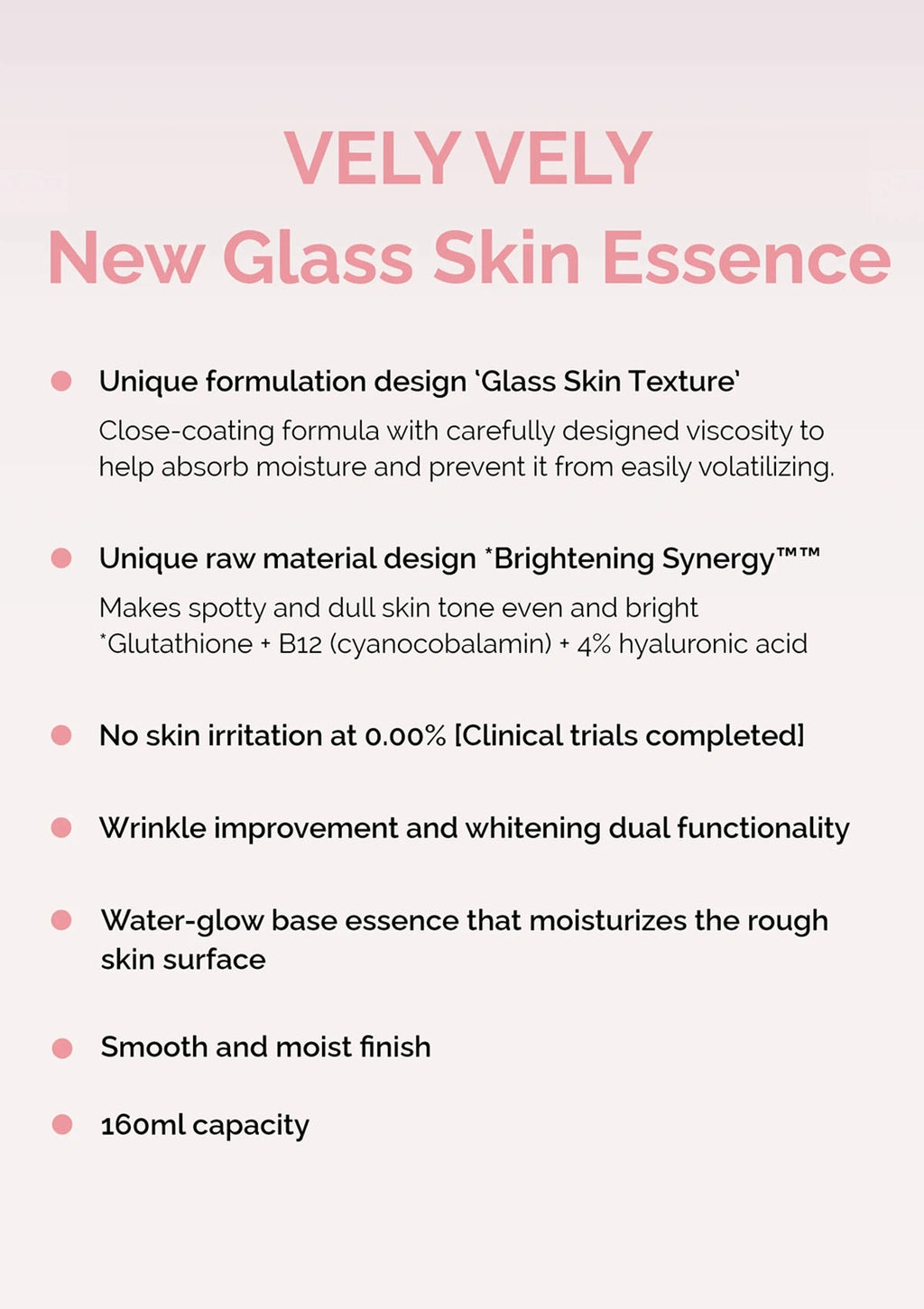 1. Best recommended to use the 3 products of the Vely Vely Glass Skin Line together in this sequence: Essence > Ampoule > Cream.