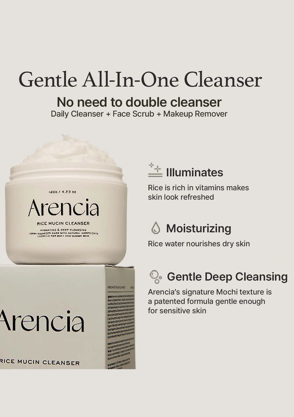 6. Arencia Rice Mucin Cleanser (120g)