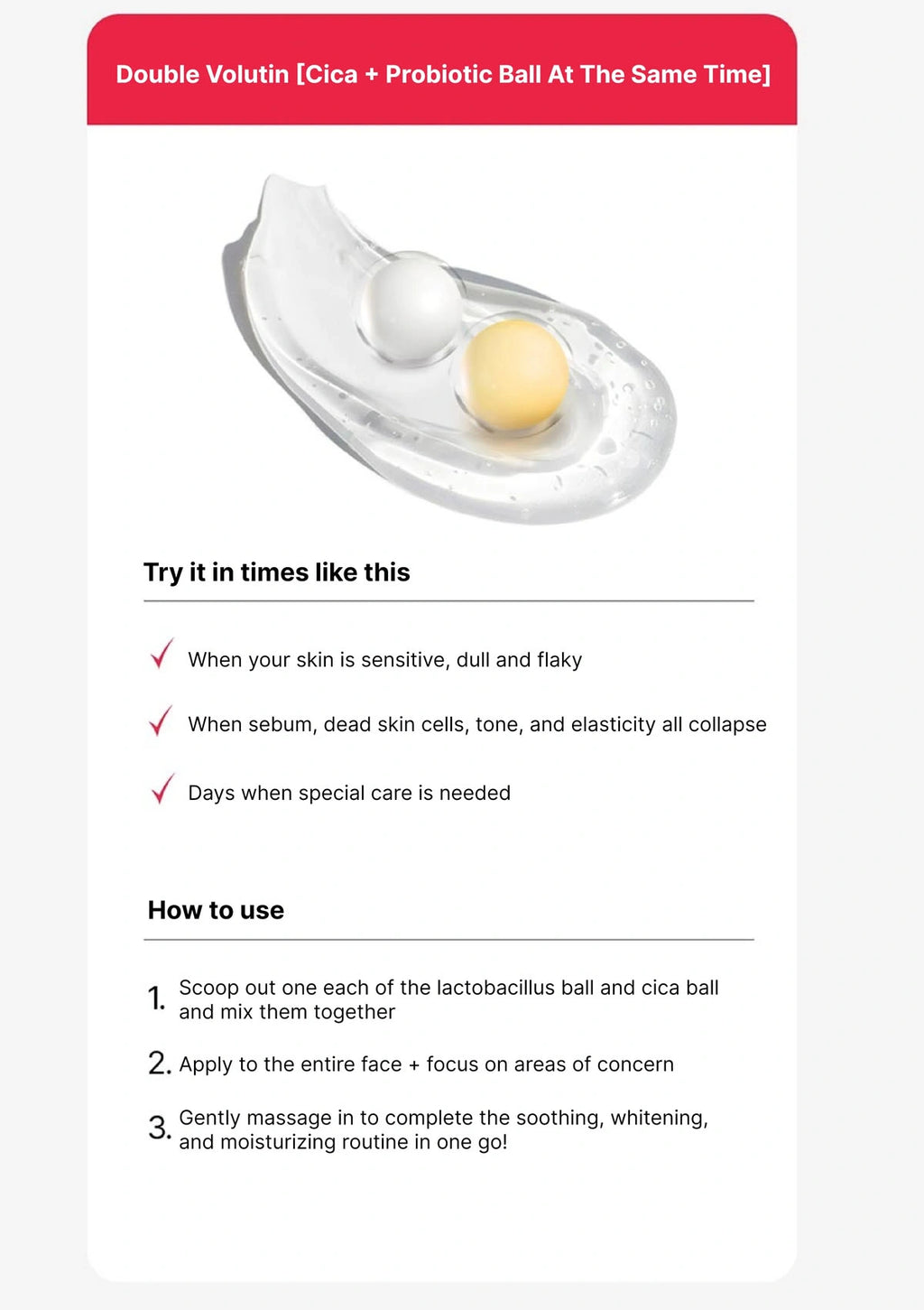 - White Probiotic Ball: For dull, lifeless skin or poor texture before makeup.