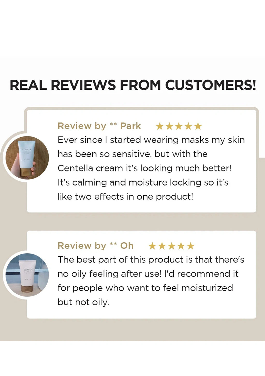 Madagascar Centella Cream an essential product to keep skin moist. The cream gently coats the skin with a moisture-packed layer to minimize evaporation of precious H2O. All-in-one cream for moisturized, bright, and wrinkle-free skin. Strengthens the skin's toughening layer with 4 active ingredients Centella Asiatica. Contains 26 allergenic ingredients and 20 ingredients to avoid according to a list made by MFDS. Non-sticky soft texture that is adhesive to the skin to provide lasting moisture. Grown in a clean climate, high quality Centella Asiatica to provide true soothing care.