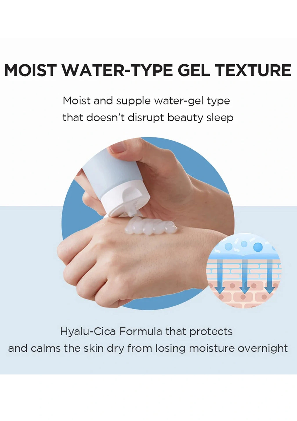 A lightweight gel sleeping mask formulated with pear and melon fruit extract to calm and vitalize skin throughout the night. Contains a powerful blend of Hyaluronic Acid and Centella Asiatica for that deep hydration your skin will thank you for in the long run.Super lightweight water-gel formula helps you achieve your much-needed sleep without leaving your skin feeling sticky or greasy.Hydrating formula revitalizes lost moisture and prevents premature skin aging.