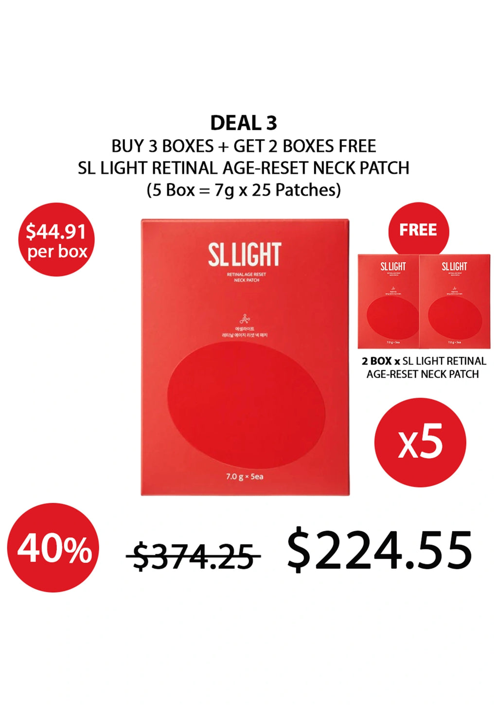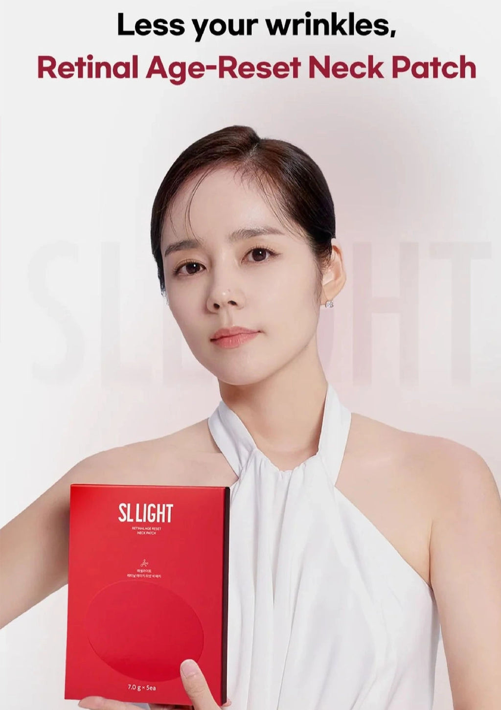 Introducing the SL Light Retinal Age-Reset Neck Patch, a cutting-edge solution designed to tackle neck wrinkles with remarkable efficacy. Clinically tested and proven to deliver significant results, this advanced patch utilizes a unique blend of high-performance ingredients. It is backed by rigorous human application tests demonstrating a 46.64% improvement in wrinkle depth and a 26.44% reduction in wrinkle extent. Certified by multiple international institutions and manufactured using eco-friendly practices, this product offers a reliable and effective solution for those seeking to rejuvenate their neck area.