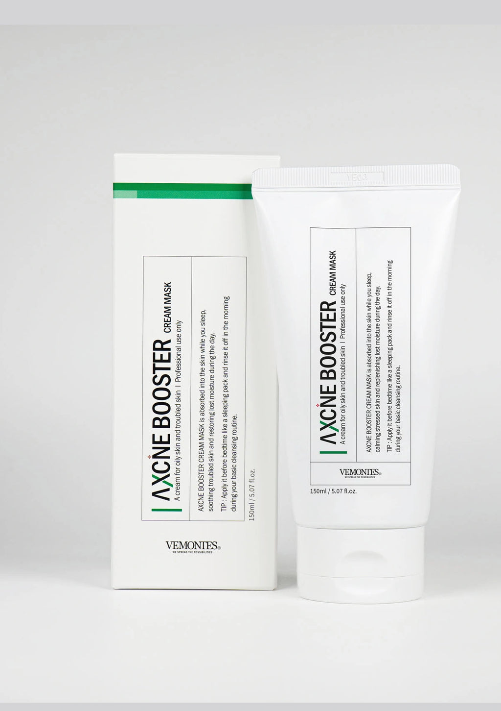 For the best acne-repair and skin-strengthening results, pair the Vemontes Axcne Booster Cream Mask with the Estro Ampoule and Axcne Booster Cream. Each step is designed to work together to reset your skin’s balance, reduce breakouts, and keep your barrier healthy.