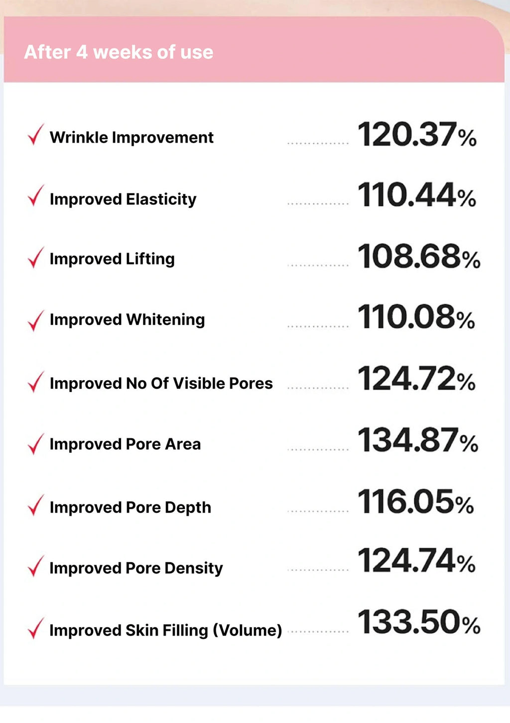 Enriched with Boriphilin to add volume to hollow areas, Caviar Extract for rich nutrients and firming, and EGF to promote skin repair and regeneration, this mask provides clinical results in as little as four weeks — including improvements in wrinkles, whitening, lifting, firmness, pore size, and overall skin volume. Safe, vegan, and formulated with fermented collagen that mimics Type 3 “baby collagen,” it brings back the youthful bounce and glow your skin deserves.
