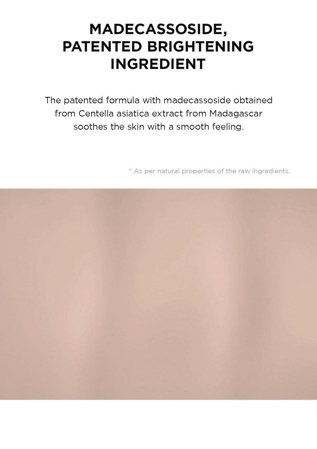 Aqua(Water), Dibutyl Adipate, Titanium Dioxide, Propanediol, Caprylic/Capric Triglyceride, Centella Asiatica Extract(29,400ppm), C12-15 Alkyl Benzoate, Diethylamino Hydroxybenzoyl Hexyl Benzoate, Ethylhexyl Triazone, Niacinamide, Caprylyl Methicone, Diethylhexyl Butamido Triazone, 1,2-Hexanediol, Pentylene Glycol, Corchorus Olitorius Leaf Extract, Hordeum Vulgare Extract, Nymphaea Alba Flower Extract, Sodium Hyaluronate, Coco-Caprylate/Caprate, Glycerin, Polyhydroxystearic Acid, Dimethicone/Vinyl Dimethicone Crosspolymer, VP/Eicosene Copolymer, Dimethiconol, Trisiloxane, Stearic Acid, Alumina, Sodium Polyacryloyldimethyl Taurate, Polyacrylate Crosspolymer-6, Hydroxypropyl Methylcellulose Stearoxy Ether, Dicaprylyl Carbonate, Ethylhexylglycerin, Xanthan Gum, Triethoxycaprylylsilane, Adenosine, Sodium Polyacrylate, Madecassoside, PVM/MA Copolymer, Polyether-1, T-Butyl Alcohol, Tranexamic Acid, Dipropylene Glycol, Sodium Palmitoyl Proline, Butylene Glycol, Iron Oxides(CI 77492), Iron Oxides(CI 77491).