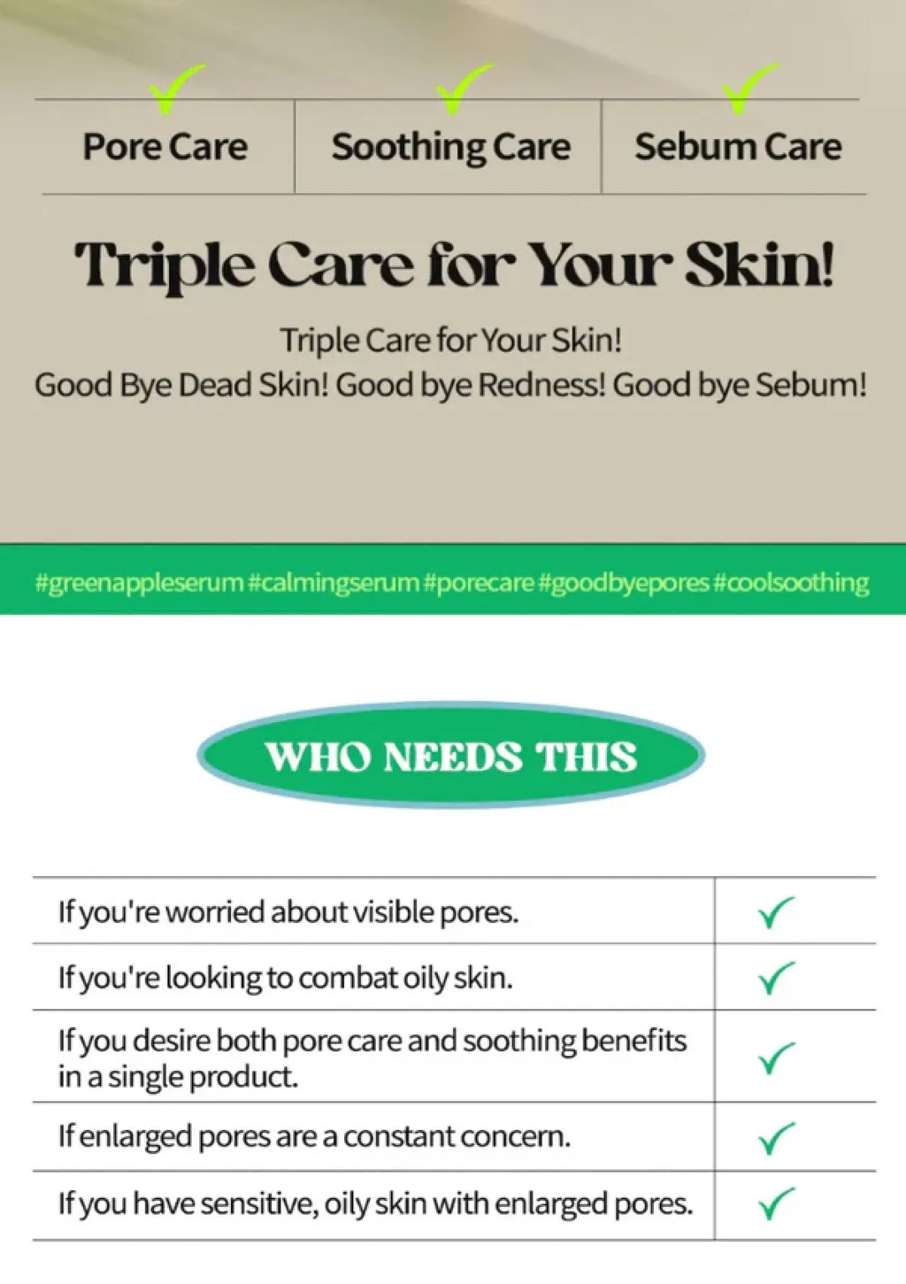 1. Green Apple Porefect Soothing Serum – Remove dead skin cells, impurities and blackheads while providing pore care and soothing benefits all in one!