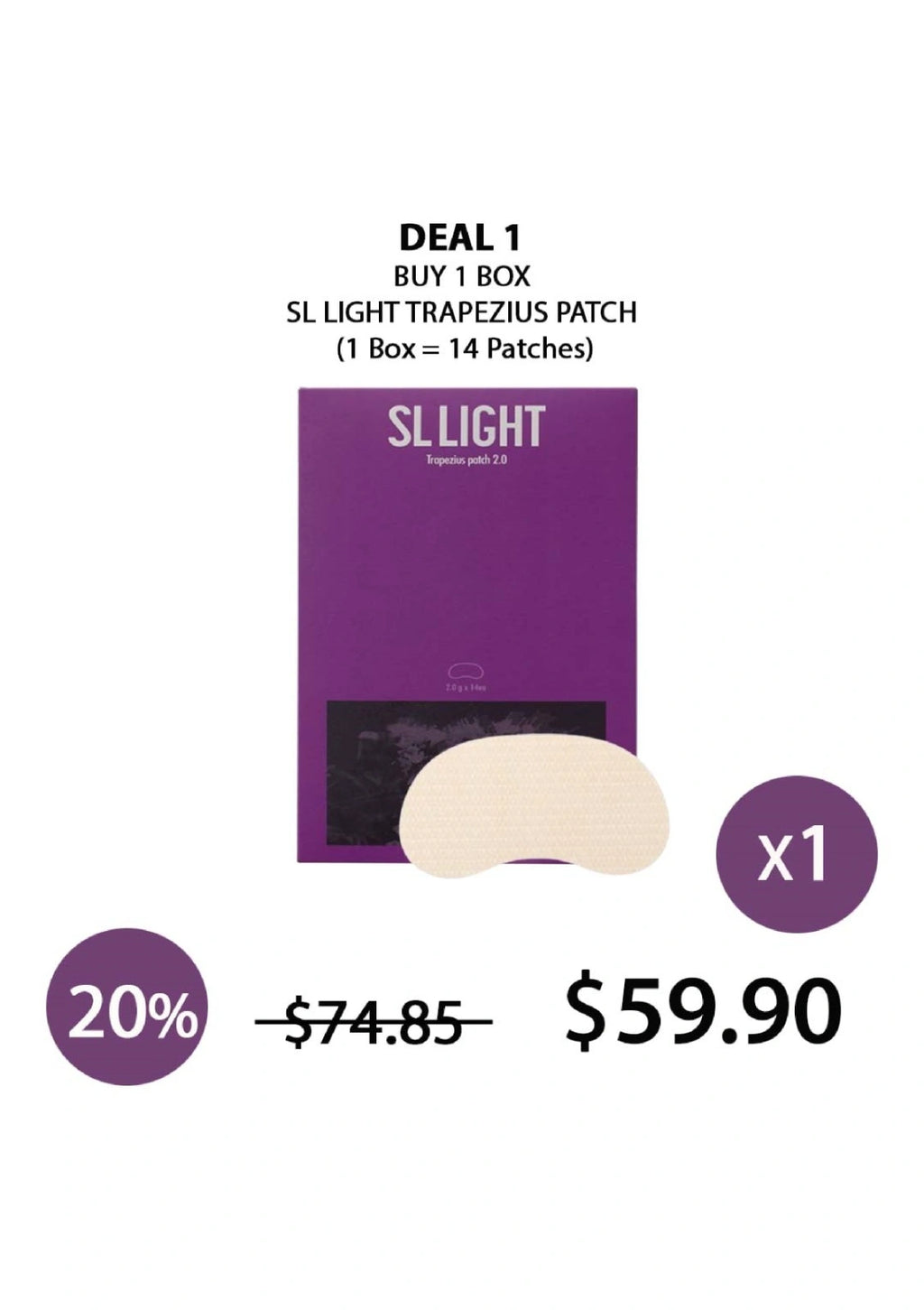 SL Light Trapezius Patch: Triple-complex, patented tech, 300% muscle reduction.